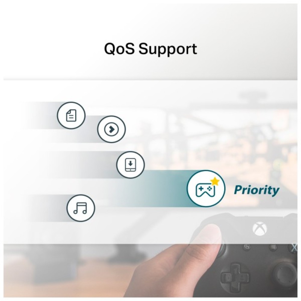- Технологія якості обслуговування забезпечує достатню пропускну здатність і запобігає перевантаженню мережі. Незалежно від того, чи граєте в потокову передачу, чи в ігри в режимі реального часу, насолоджуйтеся плавною роботою в Інтернеті.