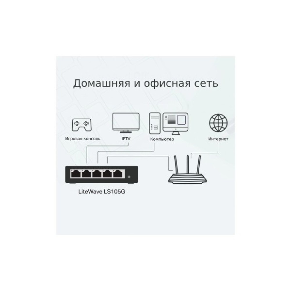 Широка сумісність TP-Link LS105G підтримує всі мережеві пристрої — від комп'ютерів і принтерів до IPTV та відеокамер. Він забезпечує якісну та стабільну роботу всіх під'єднаних пристроїв, ідеально підходячи для застосувань у малому бізнесі та вдома.
