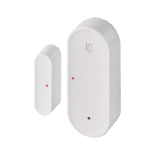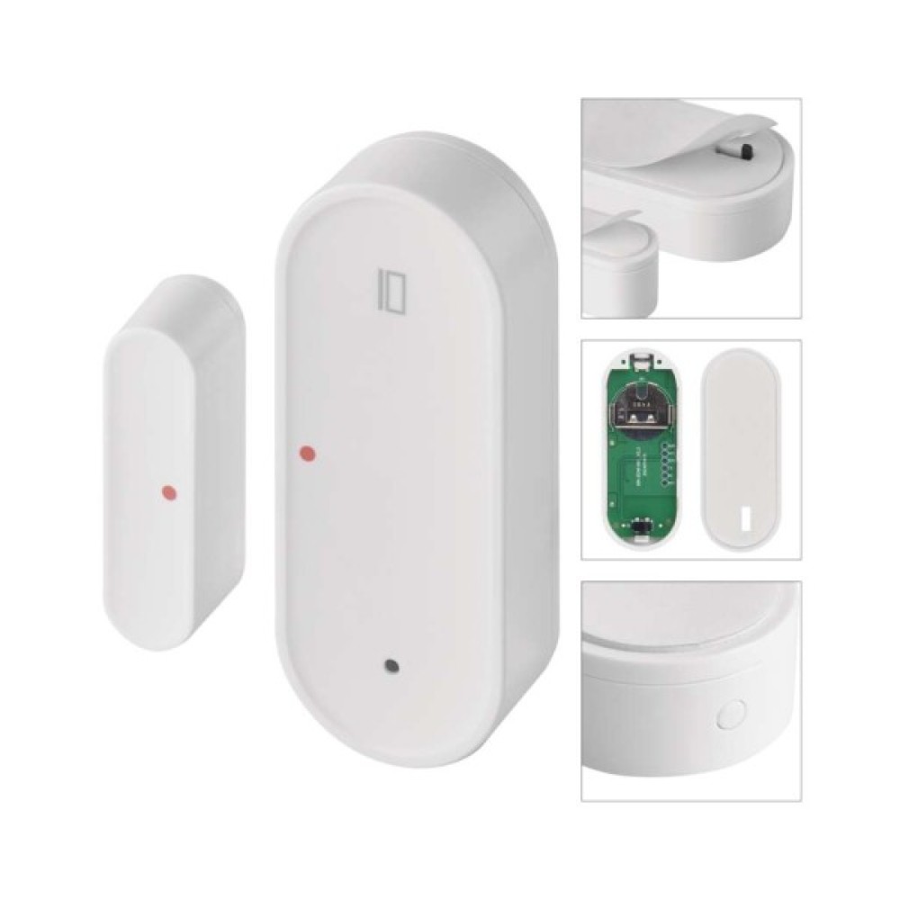 Сенсор складається з магнітних елементів, які фіксують момент відкриття або закриття дверей і одразу надсилають push-сповіщення в мобільний застосунок. Це дозволяє контролювати доступ до приміщення, запускати сценарії сигналізації, освітлення або інші автоматичні дії після відкриття дверей.