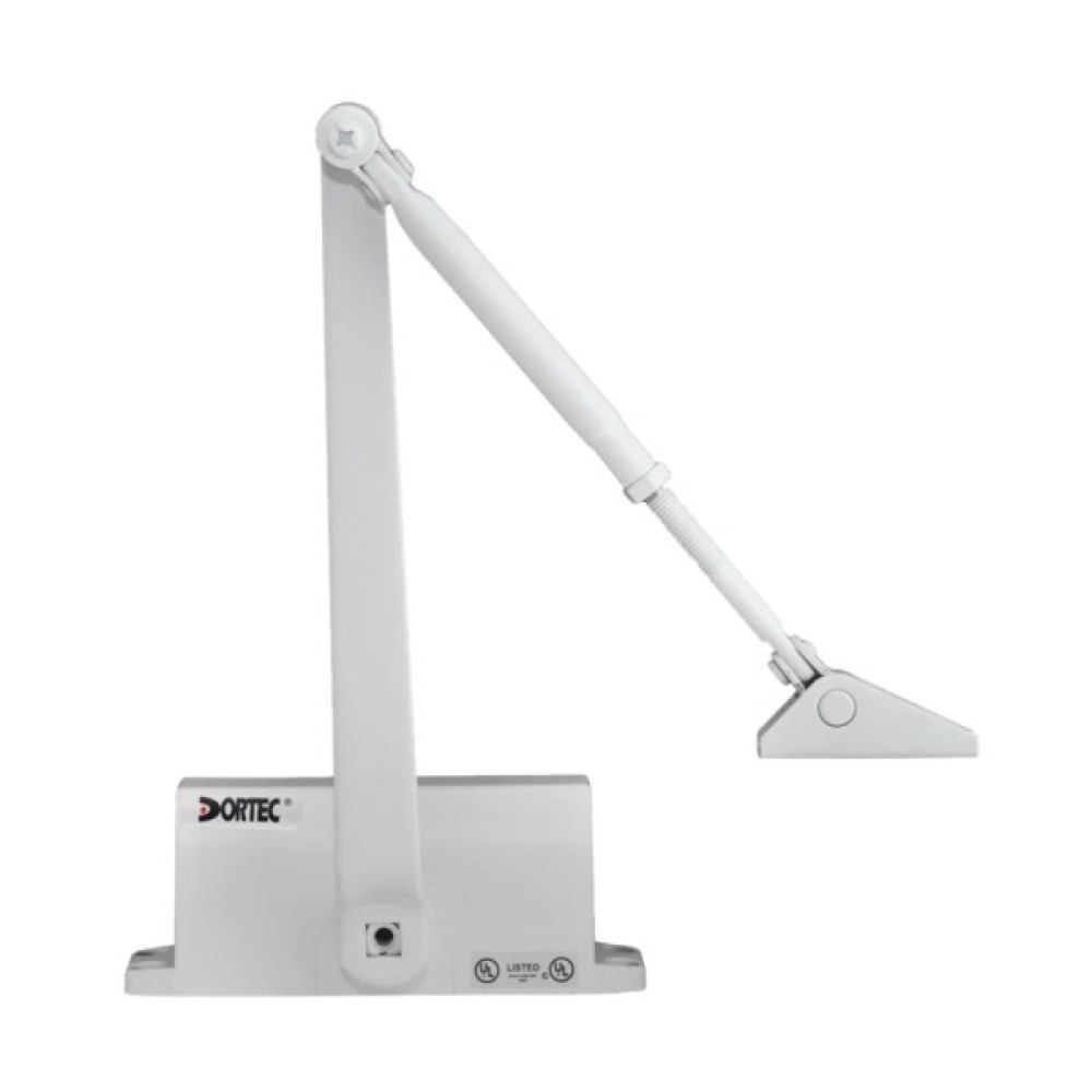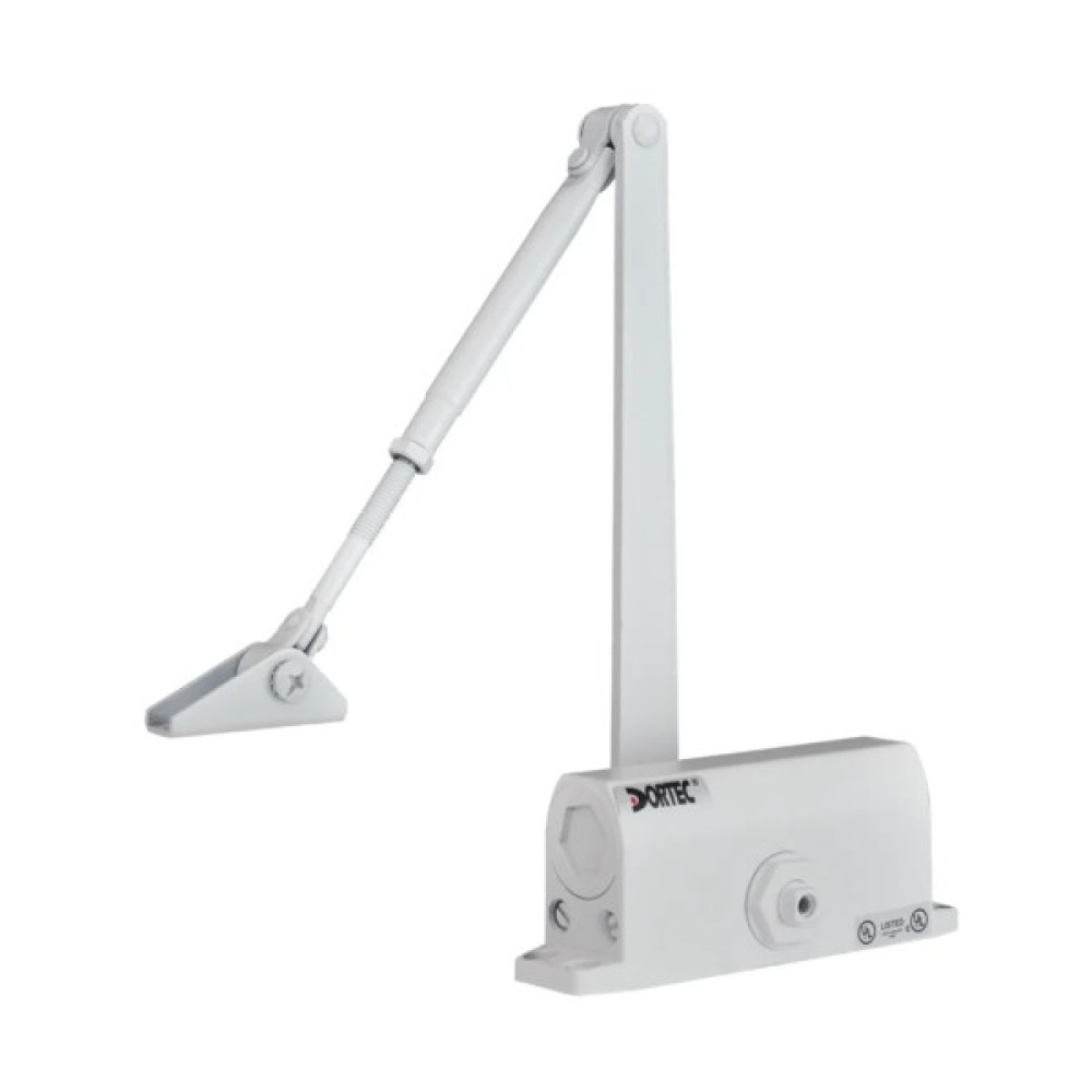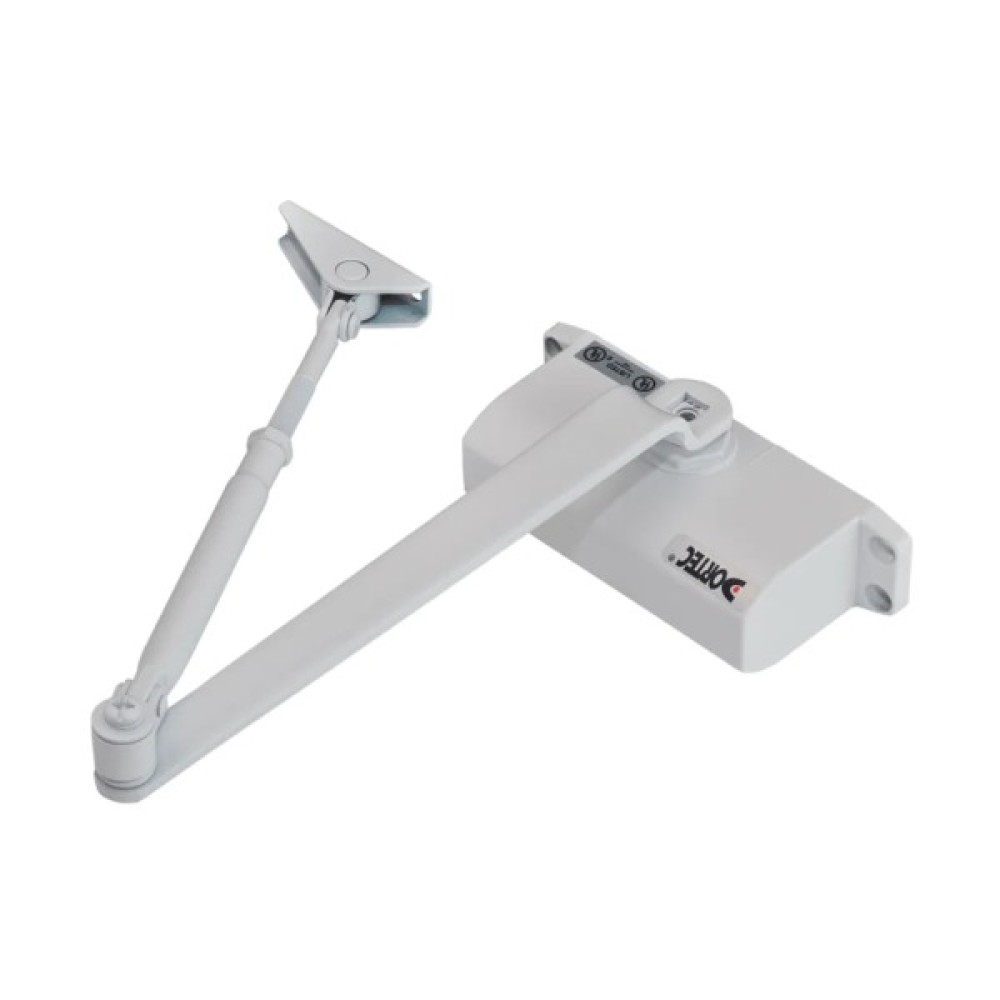 DT-62 – дана модель від ТМ Dortec відноситься до економічної та надійної серії доводчиків. Відрізняється довговічністю роботи з ресурсом циклічності до 1 млн. циклів. Пристрій універсальний і може встановлюватися як на лівосторонні, так і правосторонні двері. Зусилля розкриття складає 25-45 кг. Є функція регулювання швидкості закриття та дохлопу.