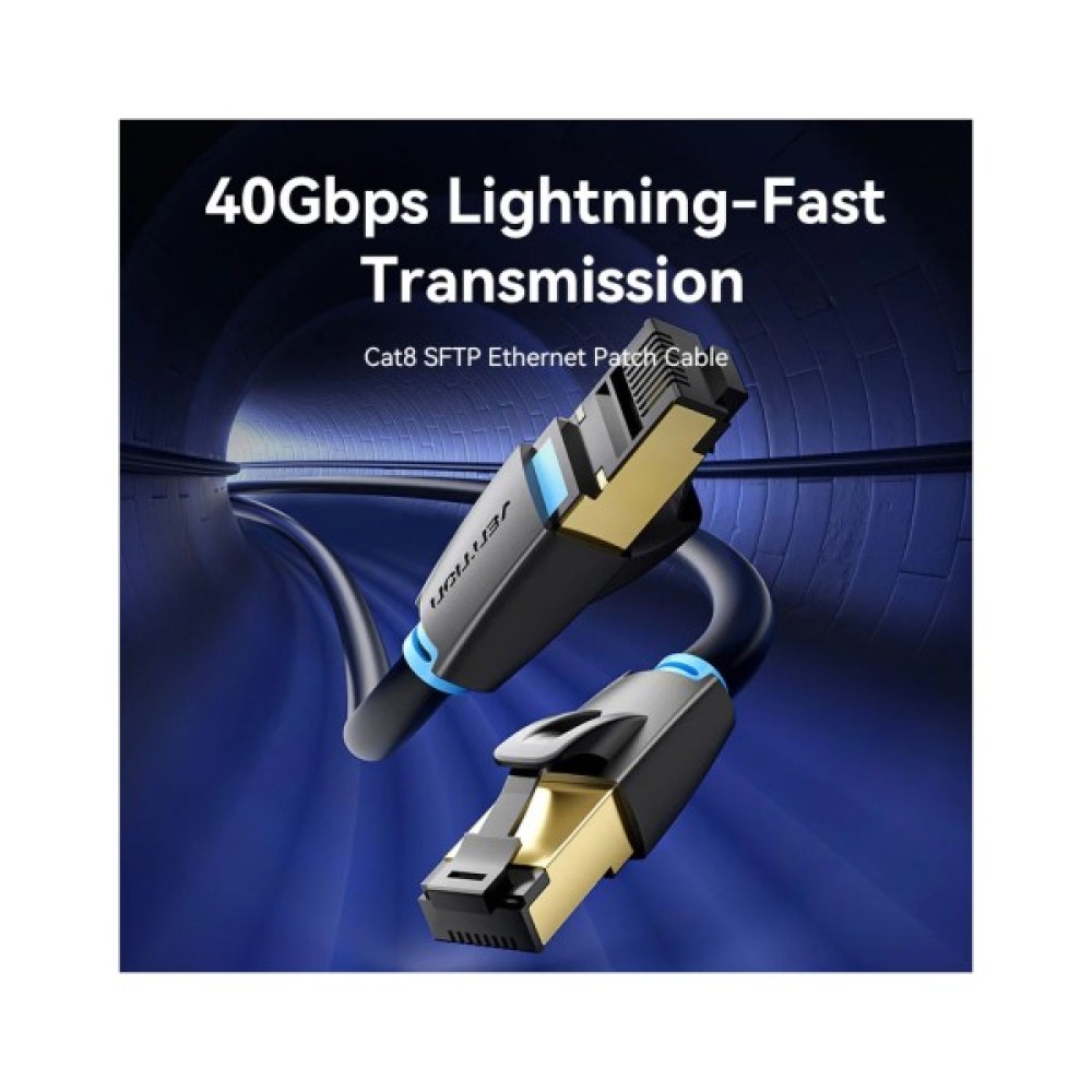 Патч-корд RJ45-RJ45 Vention LAN CAT8 SFTP 40Gbps 2000MHz Copper PVC Round призначений для комутації комп'ютерних мереж Ethernet зі стандартами 10ВАSЕ-Т (10 Мбіт/сек), 100ВАSЕ-Т(х) (100 Мбіт/х) 1000ВАSЕ-Т(х) (1 Гбіт/сек), 10GBASE-Т (10 Гбіт/сек), 40GBASE-Т (40 Гбіт/сек).