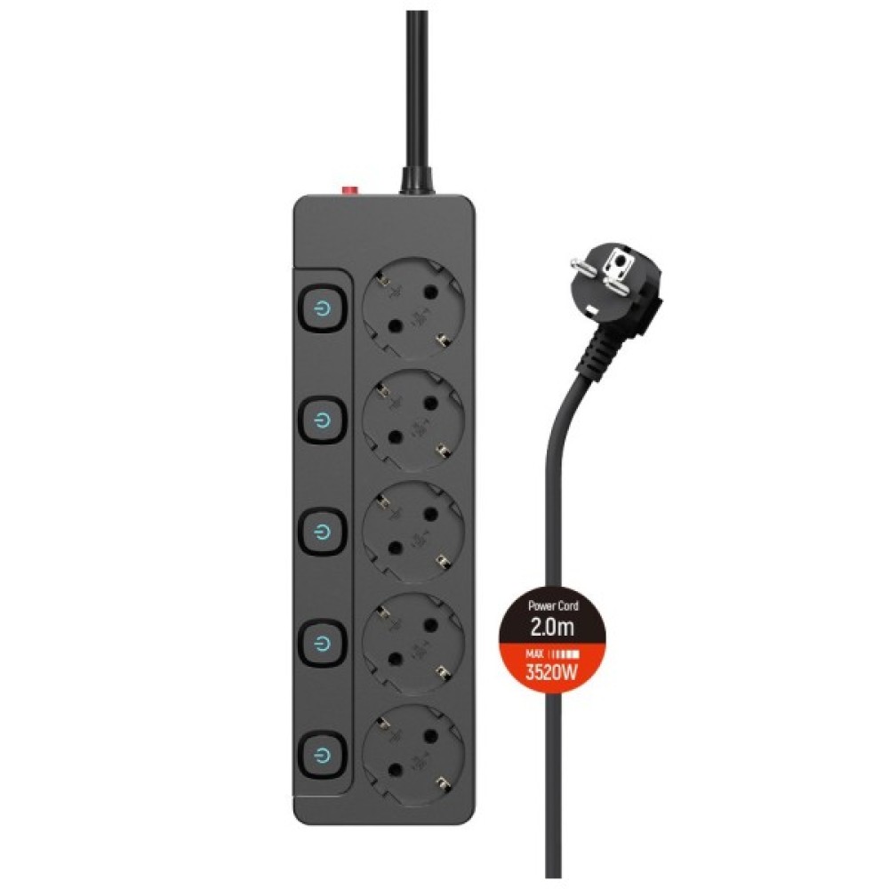 Мережевий подовжувач ColorWay, 220В, 5 розеток з індивідуальними вимикачами