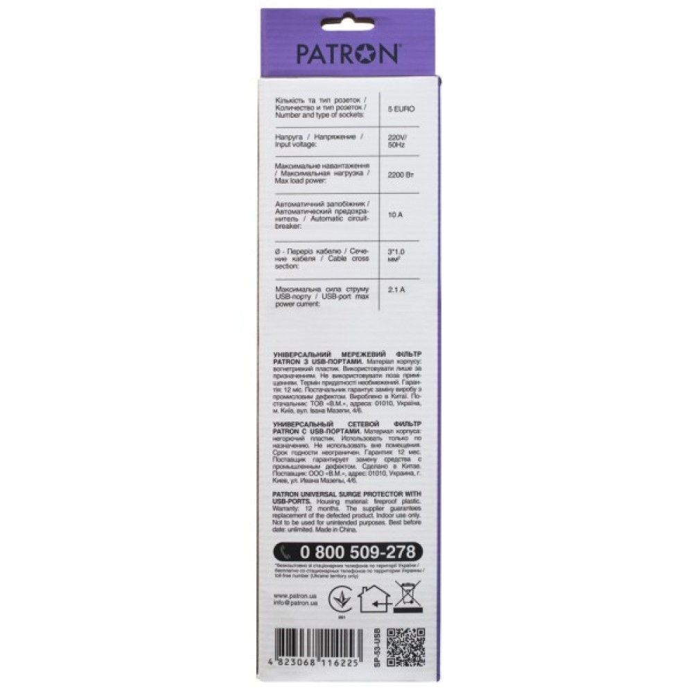 Мережевий фільтр живлення Patron моделі EXT-PN-SP-53-USB-W — це надійний вибір для захисту ваших електронних пристроїв від перенапруги. Завдяки сумарній потужності підключеного навантаження до 2200 Вт, цей фільтр здатен забезпечити живленням навіть найвибагливішу техніку без ризику перевантаження.