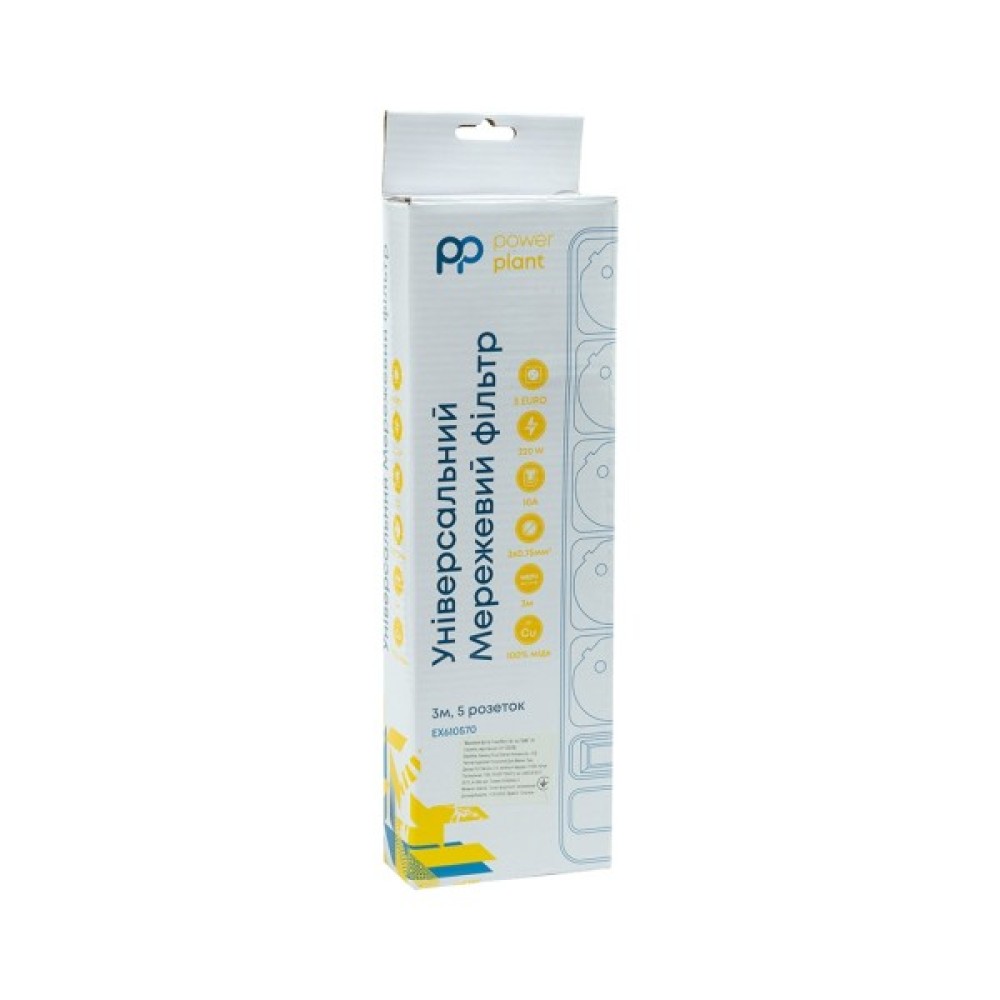 Мережевий фільтр PowerPlant (JY-1056/3B) на 5 розеток призначений для підключення широкого спектра комп'ютерної, побутової та електронної техніки до електричної мережі змінного струму з номінальною напругою не більше 250 В та номінальним струмом не більше 10 А. Кабель довжиною 3 м дозволить під'єднати техніку в місцях віддалених від стаціонарних розеток. Ізоляційний матеріал H05VV-F та провідники зі 100% міді гарантують високу стійкість до температур та механічних пошкоджень, а також максимальну електропровідність та стійкість до навантажень. Корпус мережевого фільтра виготовлений із вогнестійкого пластику. Фільтр оснащений універсальними розетками євростандарту із заземленням. Надійний та зручний подовжувач захистить електронну техніку від короткого замикання та перепадів напруги. Фільтр PowerPlant стане відмінним помічником у будинку, офісі або на дачі.