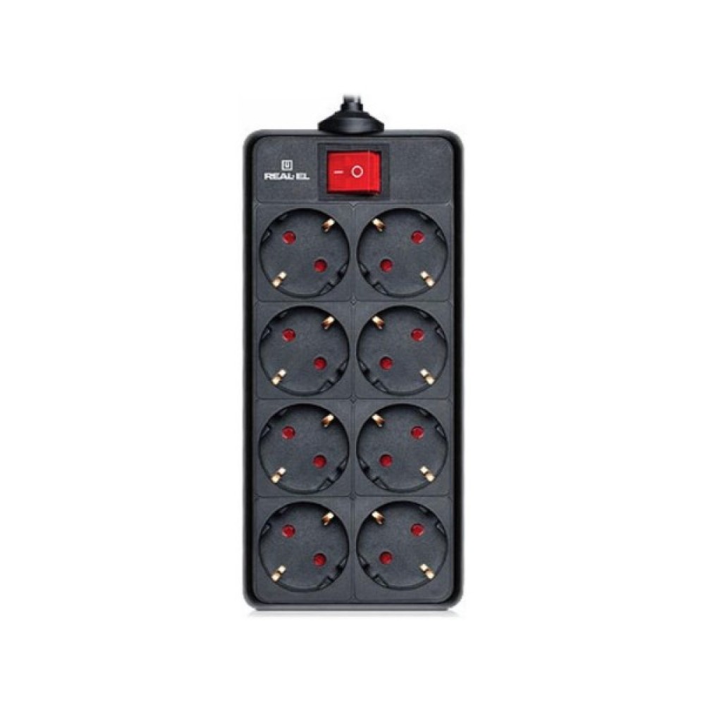 Мережевий фільтр живлення REAL-EL REAL-EL RS-8 PROTECT, 3m, black (EL122300022)