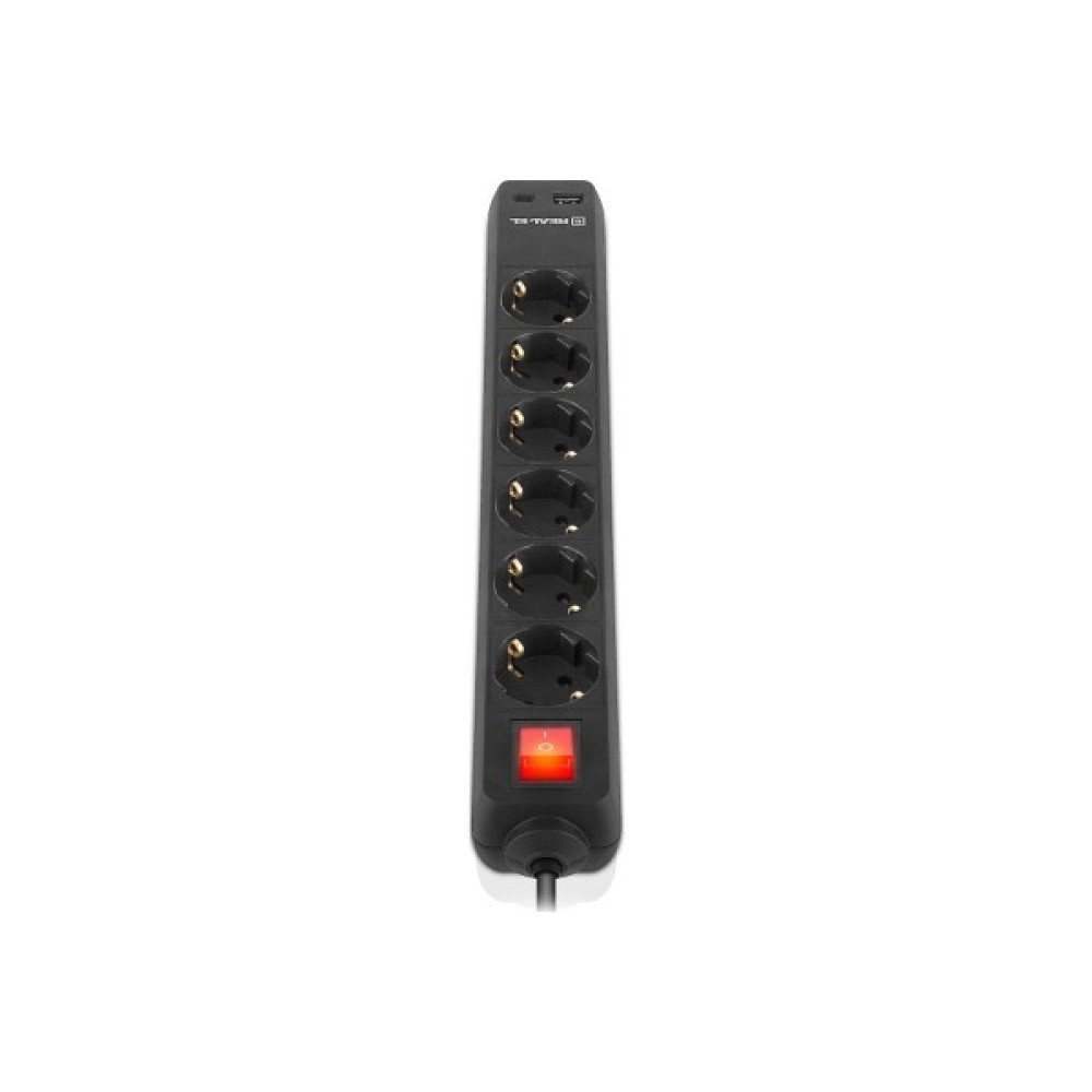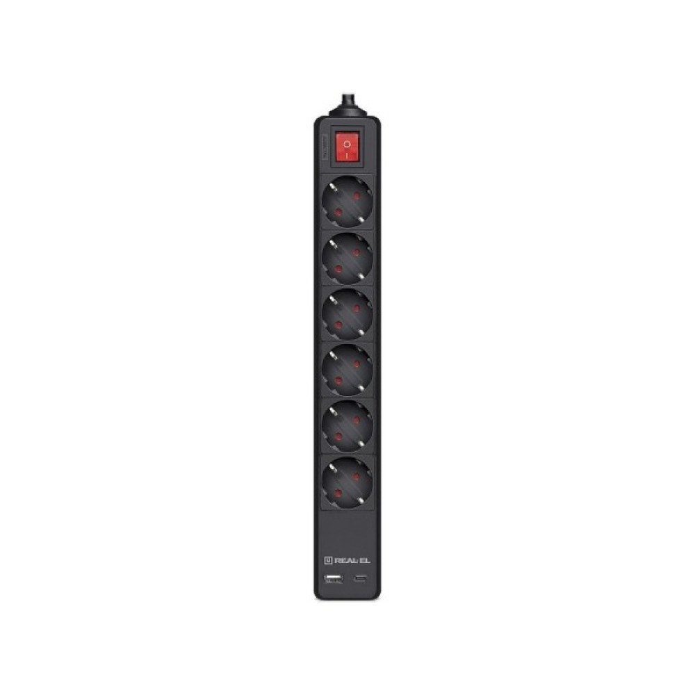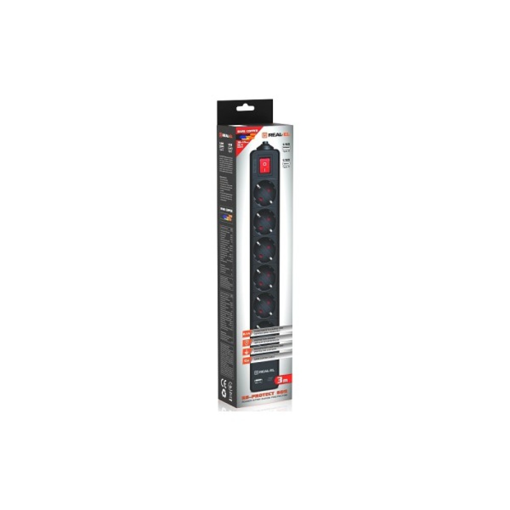 Мережевий фільтр живлення REAL-EL RS-PROTECT 605 3m, black (EL122300041)
