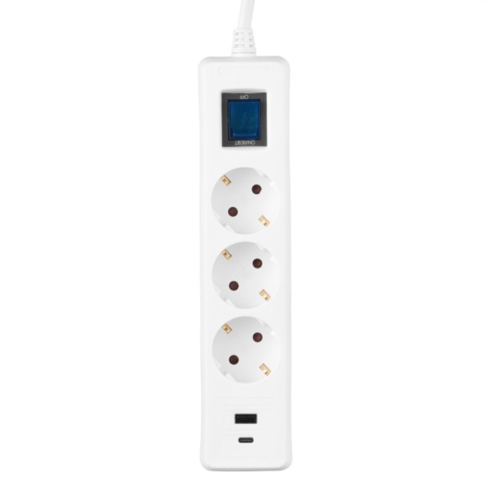 Надійний мережевий подовжувач 2Е із кабелем завдовжки 3 м і перерізом 1.5 мм² витримує навантаження до 16 А. Оснащений п’ятьма розетками типу F і додатковими рознімами USB-A та USB-C для швидкого заряджання мобільних пристроїв. Передбачено вбудований захист від перевантаження. Практичне рішення, що поєднує функціональність і зручність для дому й офісу.