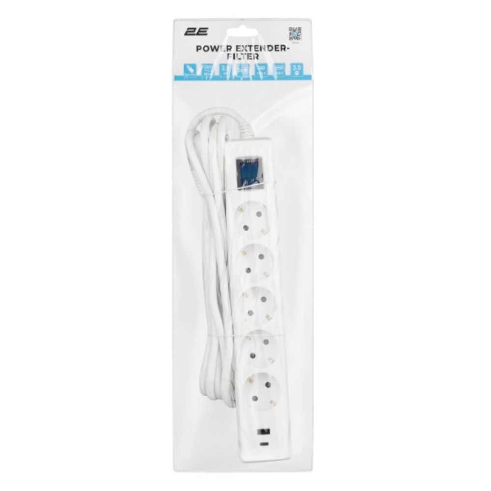 Надійний мережевий подовжувач 2Е із кабелем завдовжки 3 м і перерізом 1.5 мм² витримує навантаження до 16 А. Оснащений п’ятьма розетками типу F і додатковими рознімами USB-A та USB-C для швидкого заряджання мобільних пристроїв. Передбачено вбудований захист від перевантаження. Практичне рішення, що поєднує функціональність і зручність для дому й офісу.