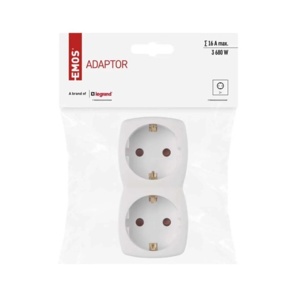 Зручний розгалужувач (двійник) розеток P00252N від чеського виробника EMOS в білому виконанні. C допомогою даного адаптера ви легко зможете розділити живлення 250 В та підключити кілька пристроїв до мережі