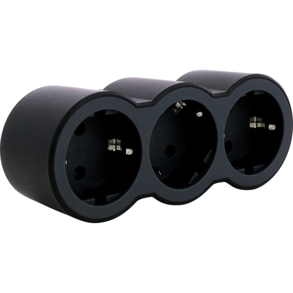 Мережевий розгалужувач Legrand СТАНДАРТ 3х2К+З фронтальні розетки , колір Чорний (694519)