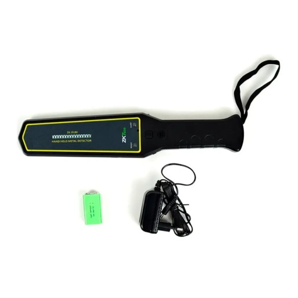 Ручний металодетектор ZK-D180 з індикатором виявлення, розташованим прямо посередині корпусу, і керованою звуковою і вібраційною індикацією.