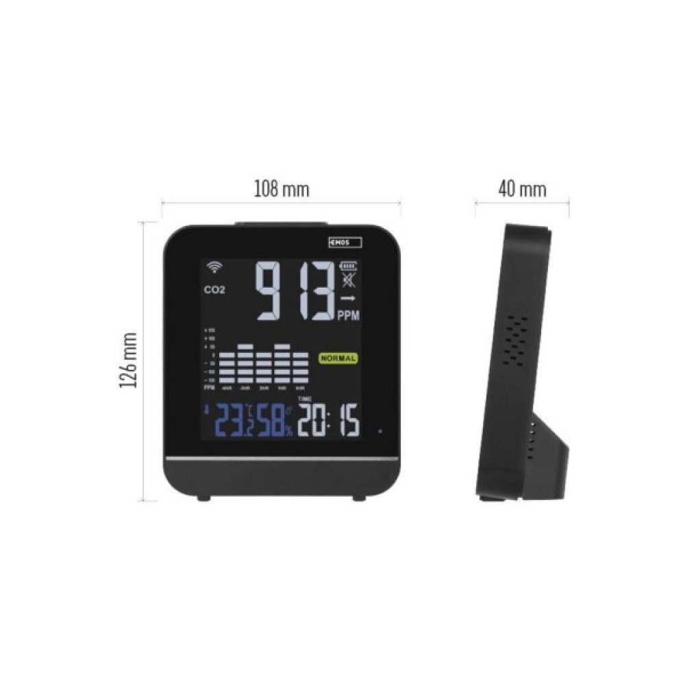 Монітор якості повітря Gosmart має безліч корисних функцій. Завдяки чіткому світлодіодному дисплею з постійним підсвічуванням ви можете отримувати інформацію про поточний стан CO2 за допомогою трьох різних колірних рівнів. На дисплеї також чітко відображається поточний час, температура та вологість у контрольованому приміщенні. У програмі EMOS GoSmart ви зможете побачити мінімальні та максимальні значення контрольованих параметрів. І бонус наприкінці! Завдяки наявності дисплея з годинником прилад можна використовувати як будильник.