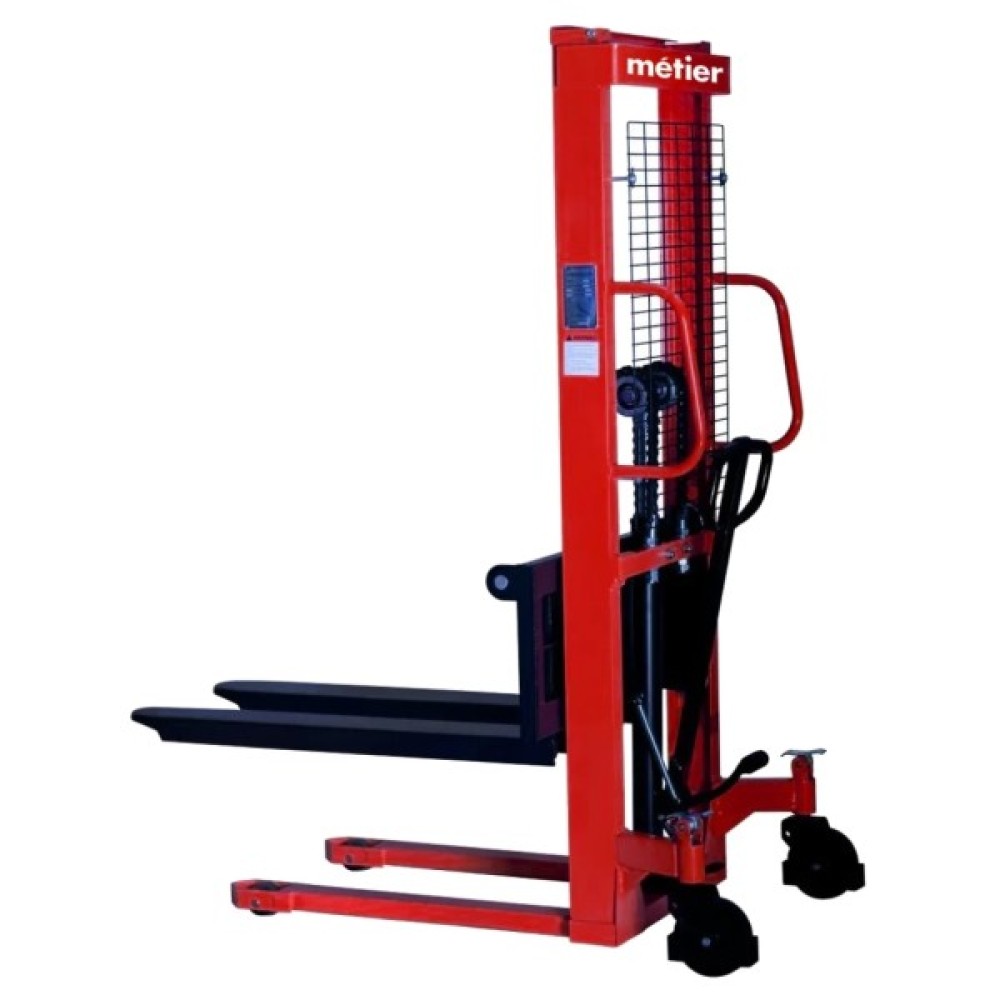 Гідравлічний штабелер Metier - складське обладнання для підняття габаритних вантажів на дерев'яних палетах і укладання їх на стелажі. Дана модель має міцний сталевий корпус червоного кольору. Ширина вил 540 мм Довжина вил 1.1 м. Максимальне підняття вантажу до 1000 кг на висоту 1.6 м.