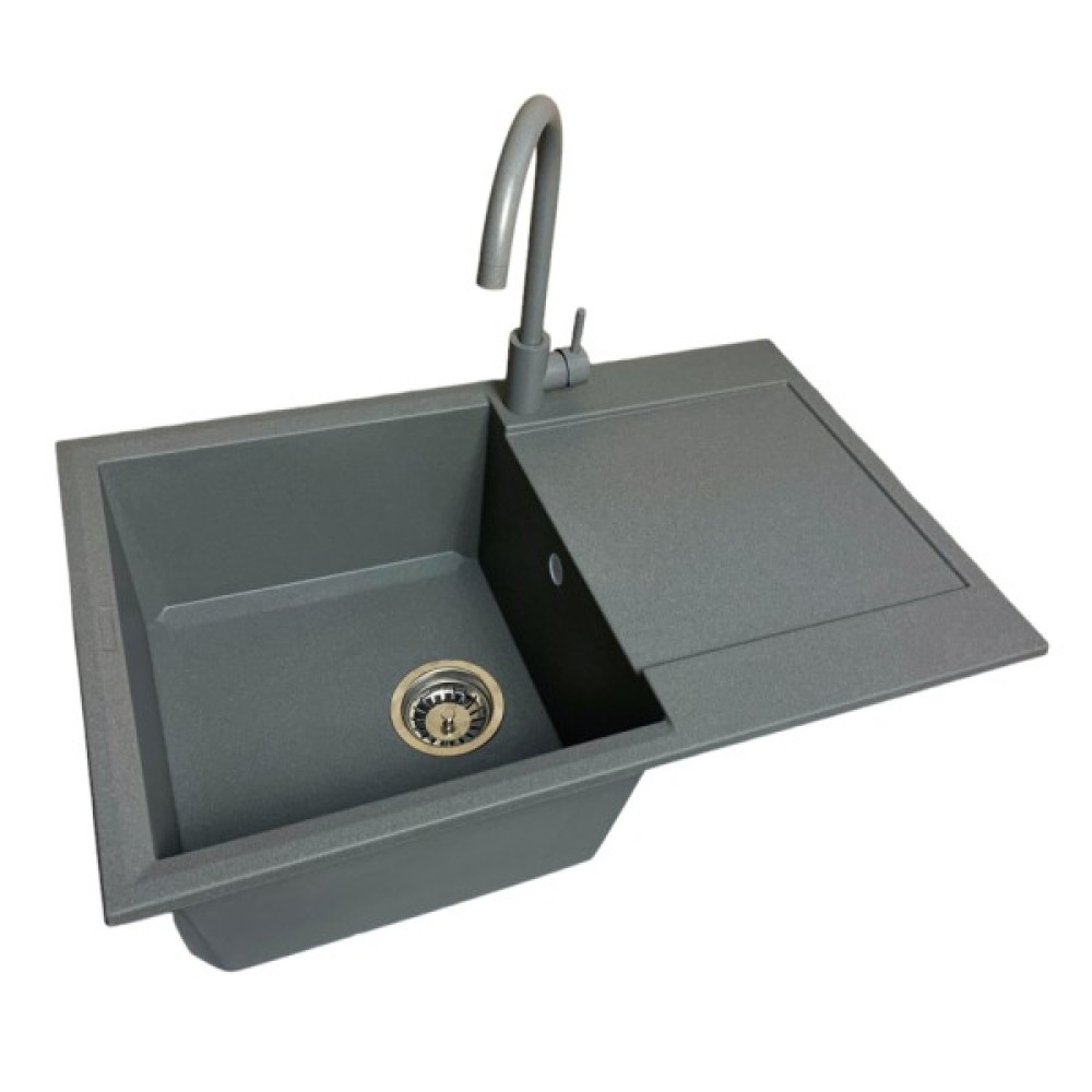 Набір Adamant Horizon поєднує простору мийку зі штучного каменю з крилом, змішувачем та дозатором, створюючи зручний і продуманий кухонний простір. Глибока чаша дозволяє комфортно мити великі каструлі та посуд. Матеріал Solid Surface відзначається стійкістю до температур і щоденних навантажень. Монтаж із нижнім кріпленням забезпечує надійну фіксацію. Це комплексне рішення для сучасної кухні з акцентом на практичність.