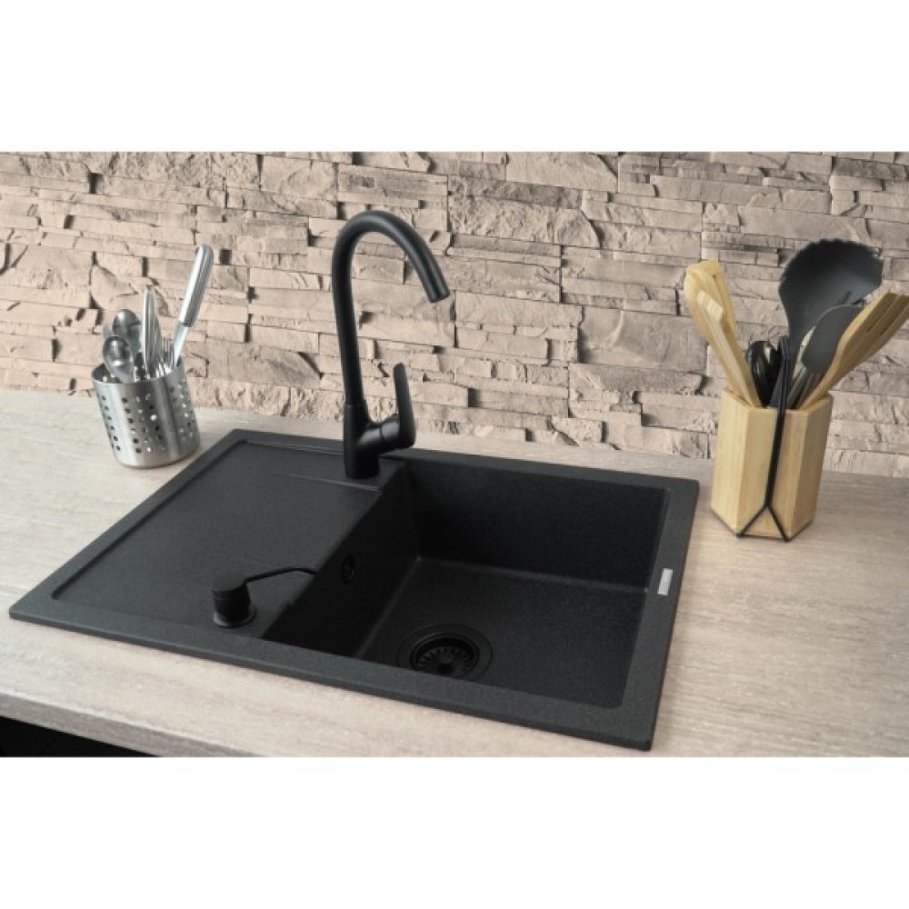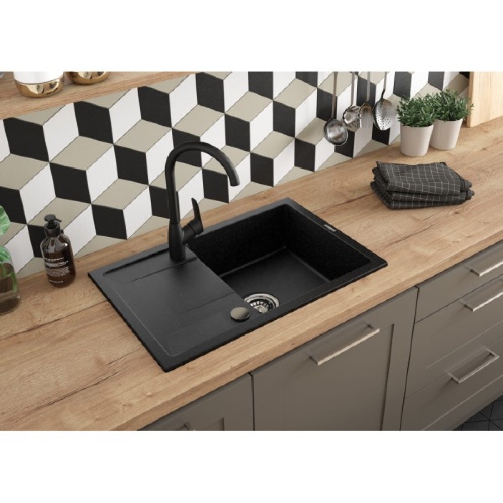Мийка Corio виготовлена з міцного гранітного композиту, стійкого до подряпин, плям, перепадів температур і механічних ушкоджень. Має одну простору чашу та функціональне крило для сушіння посуду чи підготовки продуктів. Завдяки врізному монтажу легко встановлюється та підходить для більшості кухонних інтер’єрів.