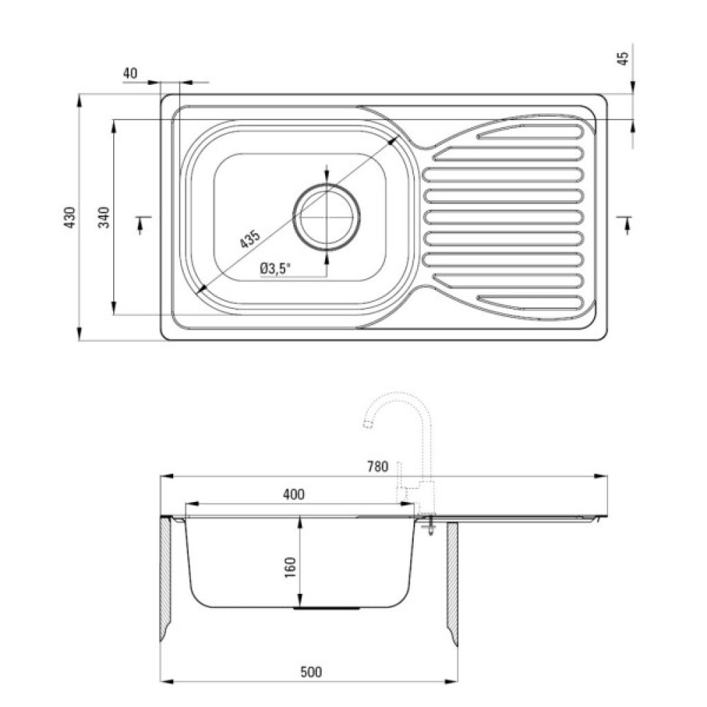 Ширина мийки, см 78
