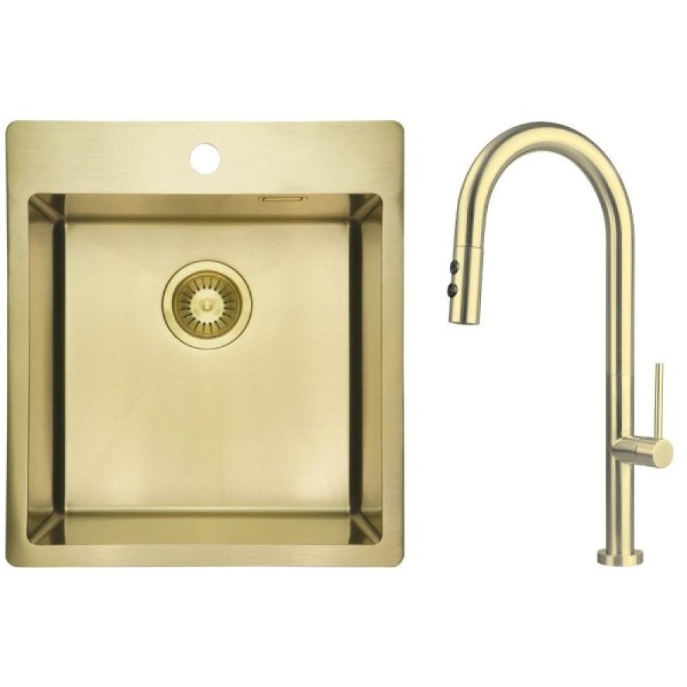 Набір для кухні Deante Olfato ZPO_R10A + змішувач BQO_R72M (ZPOER10A) – стильне та практичне рішення у сучасному дизайні. Мийка ZPO_R10А – виконана з високоякісної нержавіючої сталі у відтінку брашоване золото, має ергономічну прямокутну форму, зручну чашу та стійке до пошкоджень покриття. Змішувач BQO_R72M – у тому ж кольорі, з елегантним сучасним дизайном та зручною поворотною виливкою.
