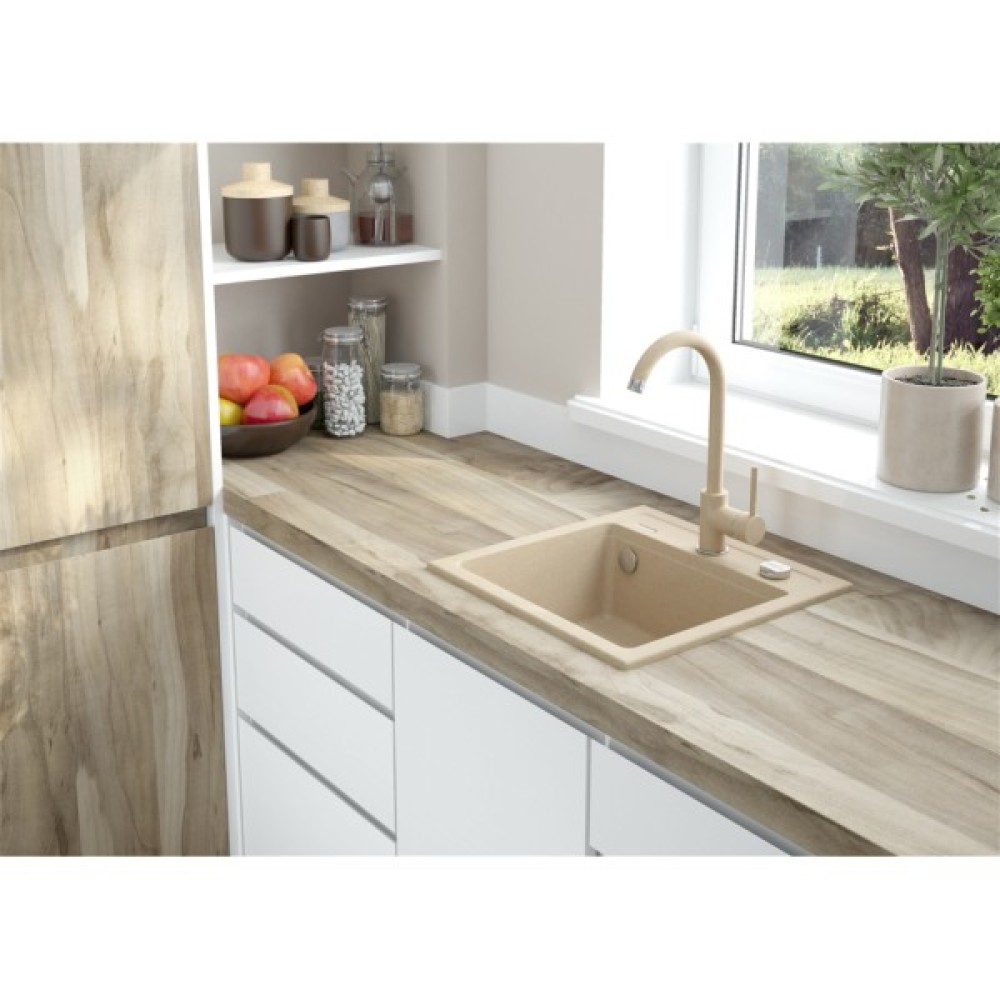 Змішувач BEN_762M, виконаний у тому ж пісочному оздобленні, не тільки доповнює мийку, але й забезпечує комфорт у користуванні. З однією ручкою, він легкий в управлінні, а рухомий носик дозволяє наливати воду в різні ємності з максимальним зручністю. Аератор з технологією honeycomb гарантує економічний витрата води, що допомагає вам зберігати ресурси без шкоди для якості напору.