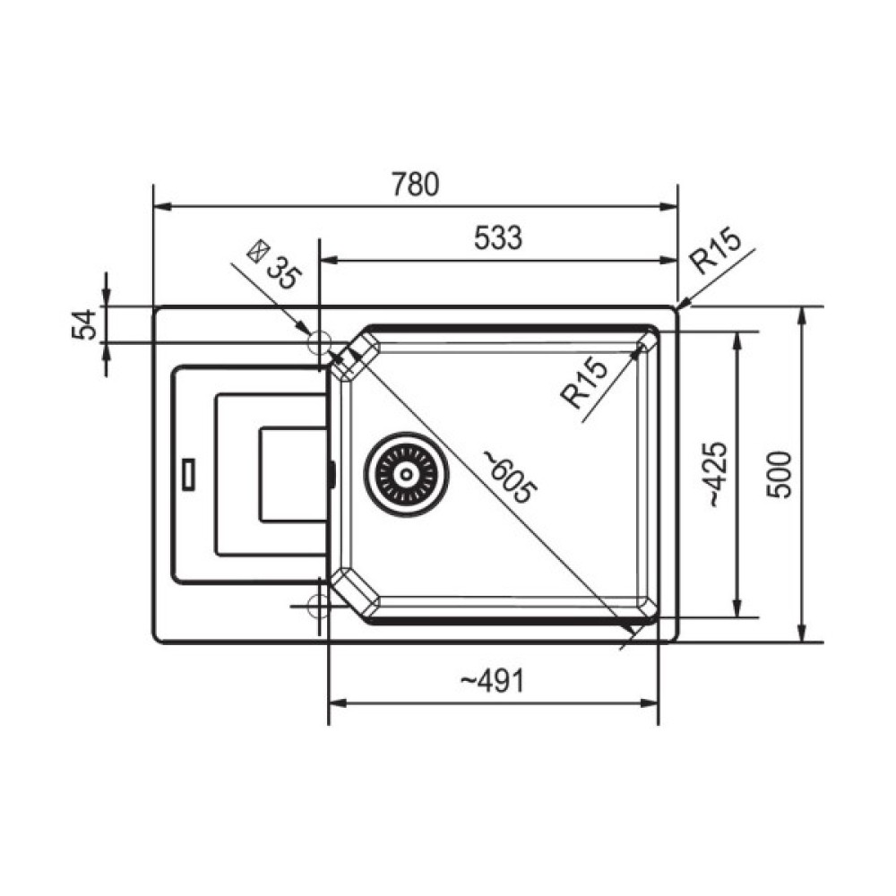 Ширина мийки, см