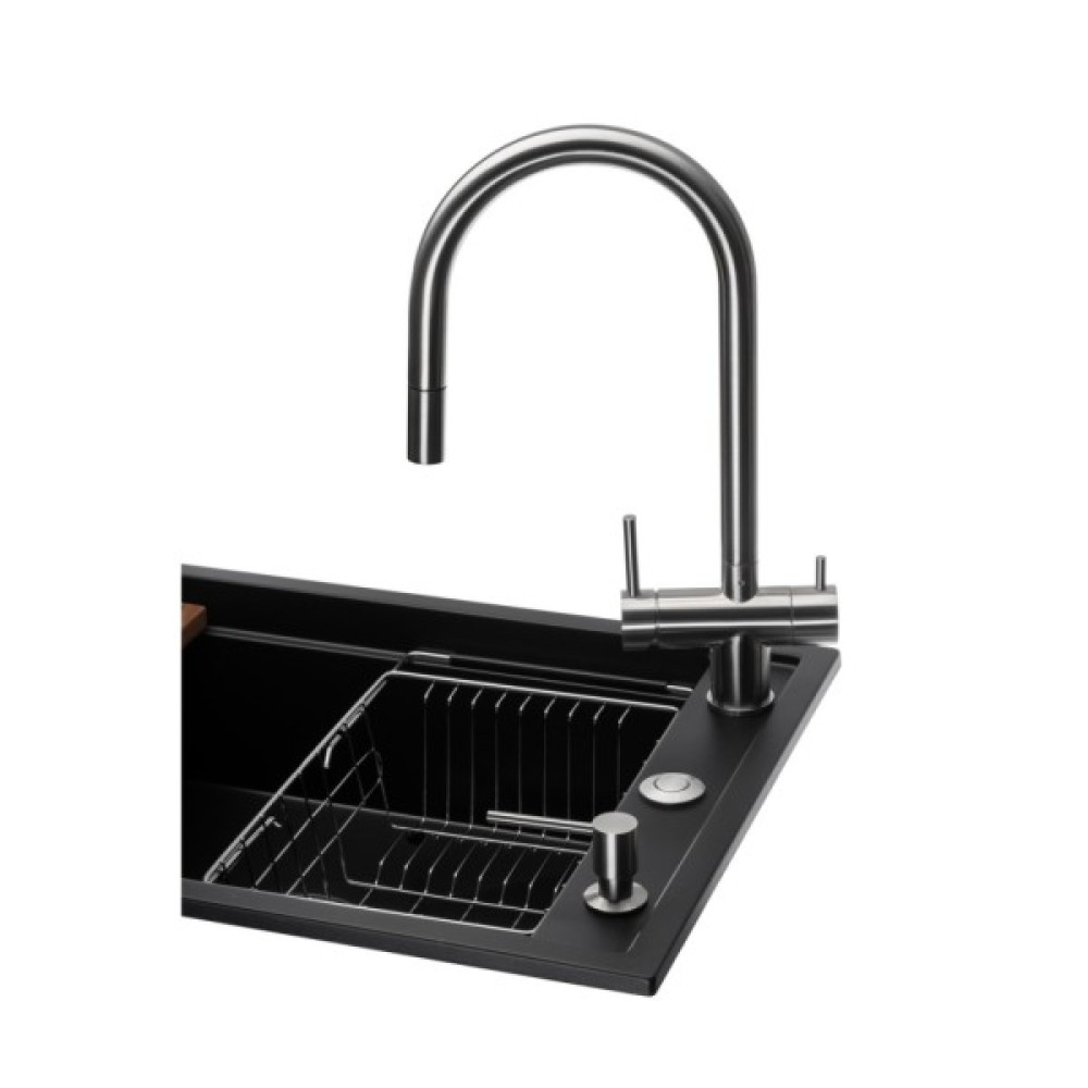 Кухонна станція GRANADO Royal – це розкішна знахідка для функціональної кухні! Ми потурбувалися про те, щоб ваш простір був дбайливо організованим, і користування мийкою — максимально зручним. Тож зібрали для вас у комплект мийку, подрібнювач, змішувач, дозатор, металевий кошик та кухонну дошку.