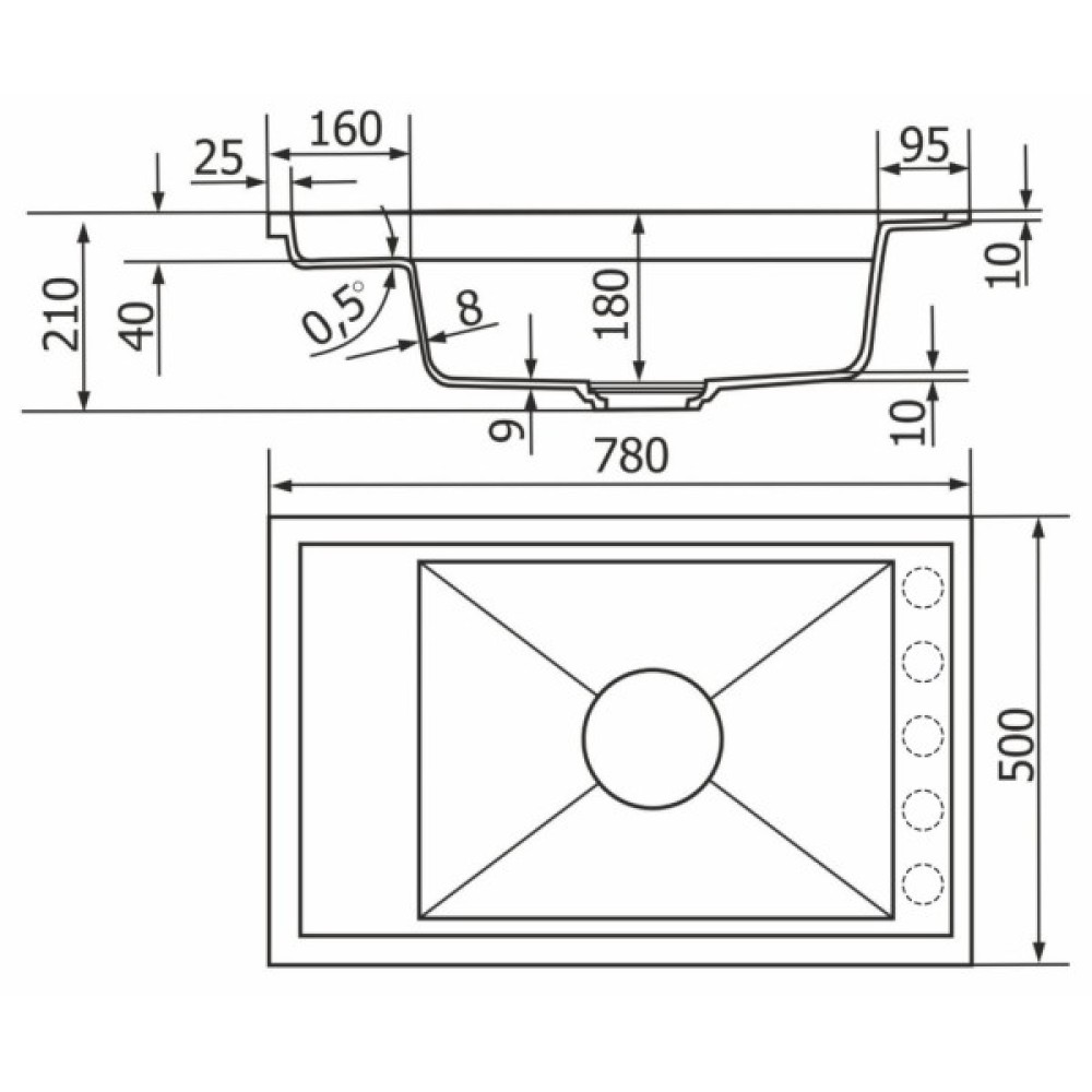 Кварцова мийка GRANADO Estella – це вже пів шляху до успіху. Модель розміром 780*500 мм буквально створена для тумб шириною 800 мм. Простора чаша обрамлена жолобками та панеллю для аксесуарів — все необхідне і нічого зайвого.