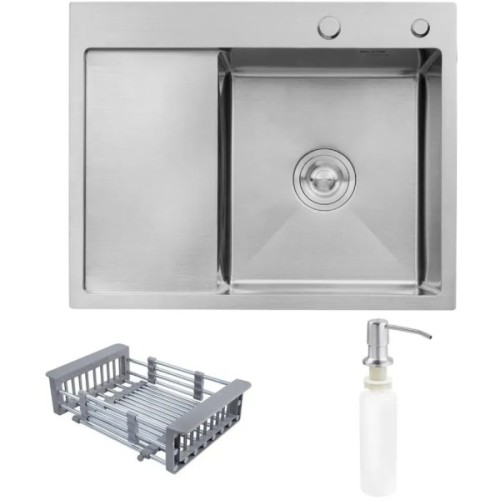 Кухонна мийка KRP Gebürstet 6350RHM від Kroner виготовлена з високоякісної нержавіючої сталі харчової марки, тому виріб прослужить довгі роки.Мийка виконана у вигляді прямокутної чаші з крилом для посуду, монтується інтегрованим способом.