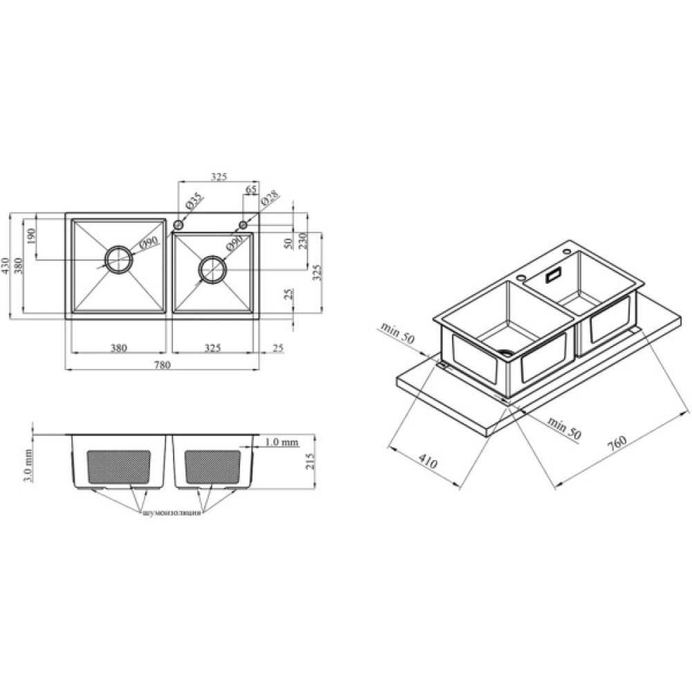 Довжина мийки, см 78