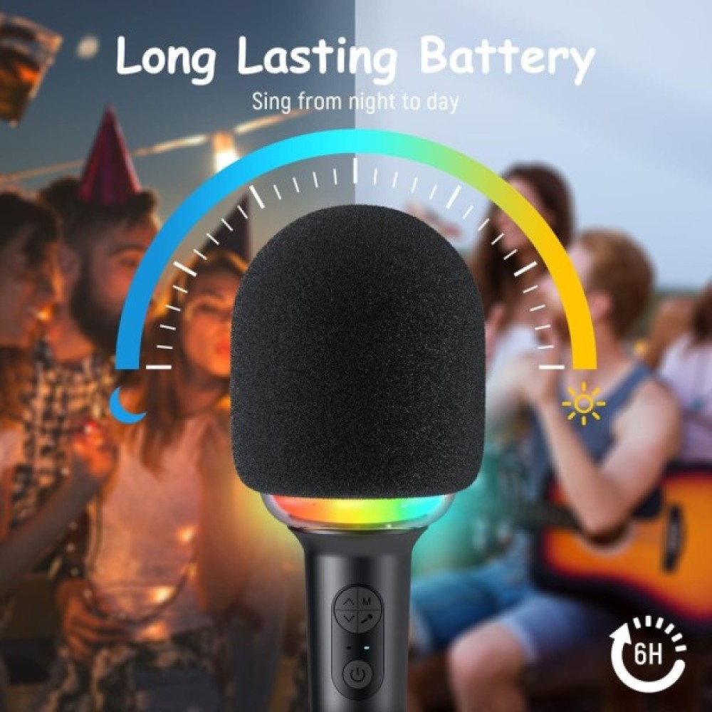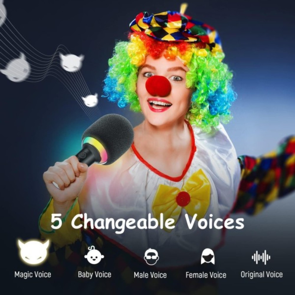 Стабільна передача Bluetooth 5.2 забезпечує миттєве сполучення між бездротовим мікрофоном і вашим пристроєм. Чудово сумісний із планшетами/iPad, ноутбуками, мобільними телефонами iOS iphone та смартфонами Android, бездротовий мікрофон для співу позбавляється традиційного єдиного підключення, але оснащений бездротовим зв’язком і 3.5-міліметровим входом Aux. Має 5 видів зміни голосу (жіночий, чоловічий, дитячий, магічний голос і оригінальний голос) інтегровані в бездротовий мікрофон Bluetooth.