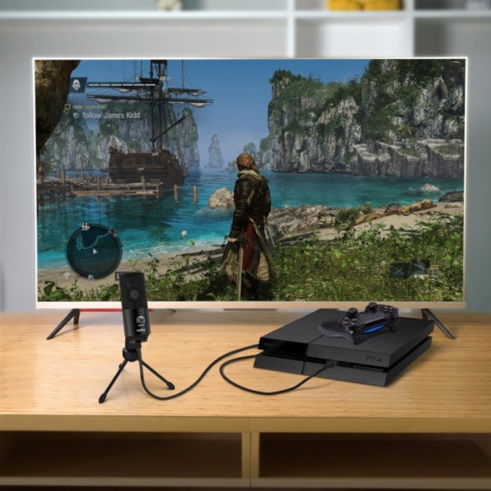 Дуже добре підходить для подкастингу, озвучування потокових ігор на Twitch тощо. Великий діафрагмовий конденсаторний мікрофон, який поєднує в собі якісне захоплення звуку з легкістю під'єднуваного USB-з'єднання на комп'ютерах Mac і Windows, без жодних драйверів, без потреби використання зовнішньої звукової карти.