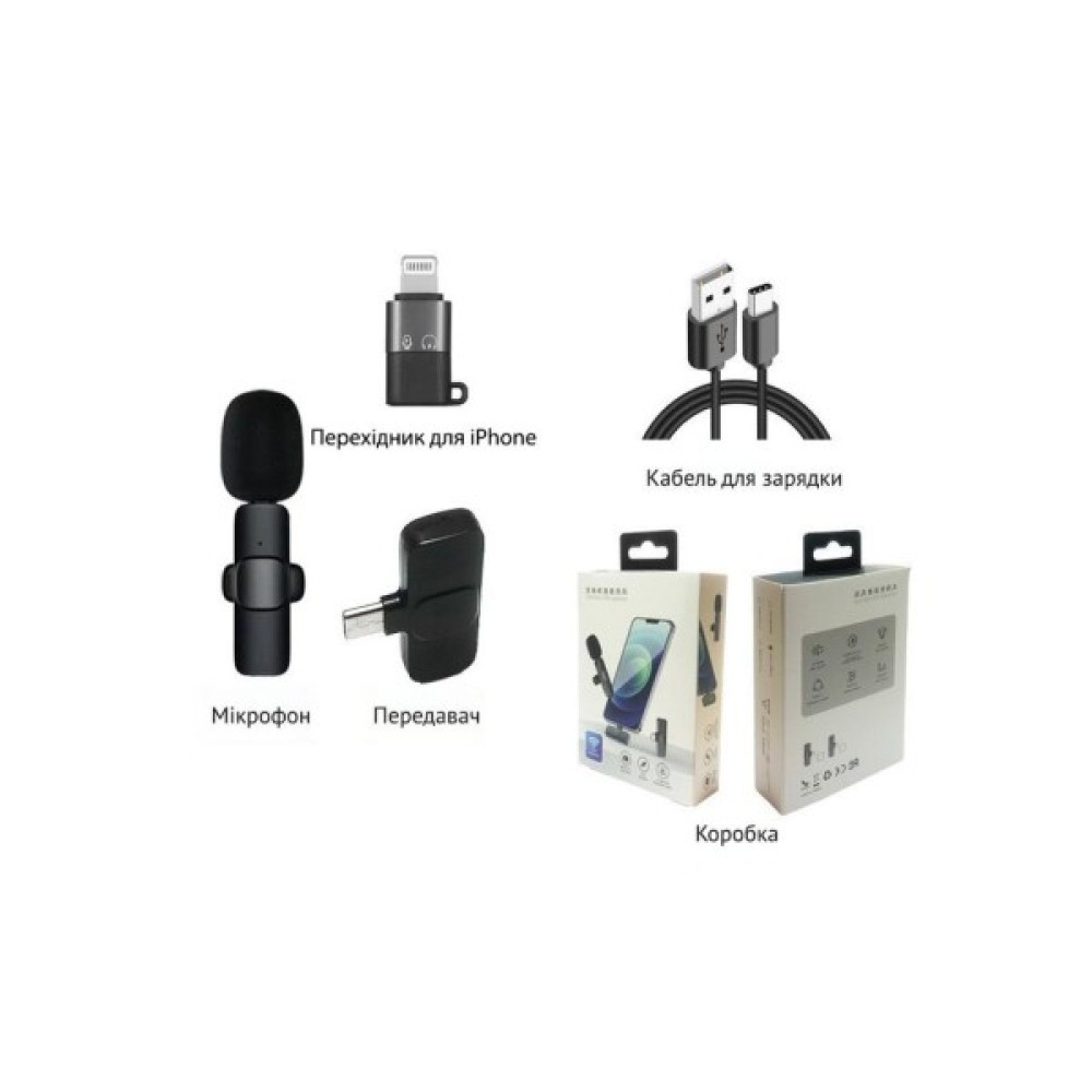Бездротовий петличний мікрофон XOKO K9 з адаптером Lightning-Type-C