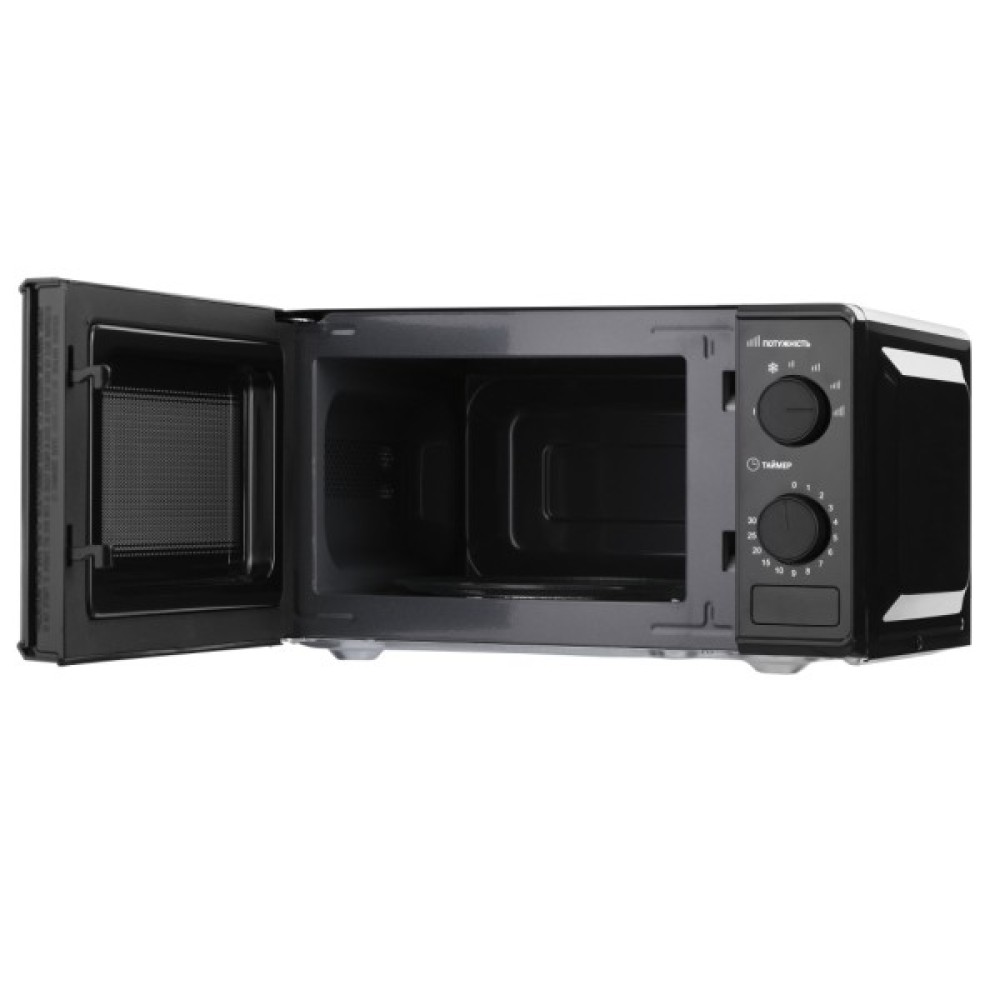 Ергономічне механічне керування надає цій моделі особливої зручності. Мікрохвильова піч оснащена двома поворотними перемикачами, які дозволяють легко контролювати потужність і час приготування. Клавіша для відкриття дверцят спрощує процес використання, роблячи його інтуїтивно зрозумілим.