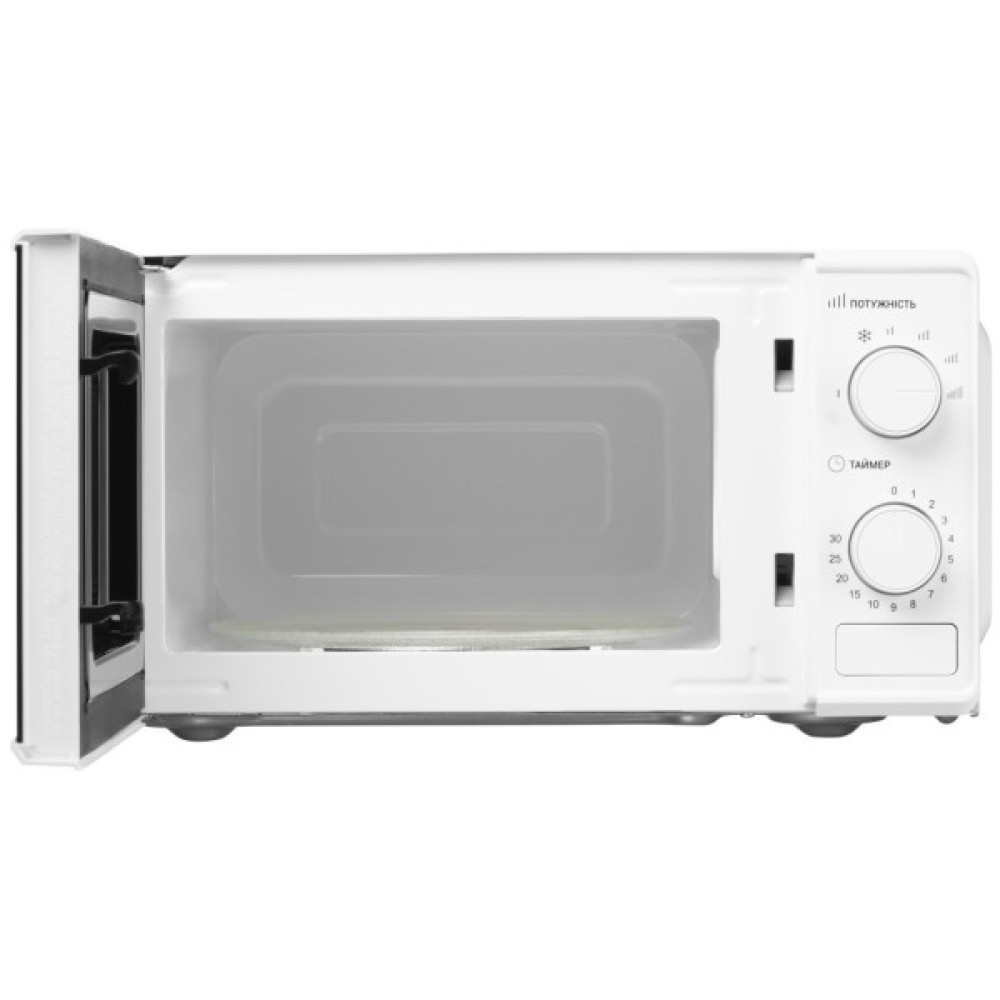 Загальний дизайн мікрохвильової печі виконано в білих відтінках, що не тільки додає елегантності, а й доповнює атмосферу будь-якої кухні. Її компактні розміри — 46.6 см у ширину, 33.6 см у глибину та 24.3 см у висоту — дозволяють розмістити мікрохвильову піч в будь-якому зручному для вас місці, не займаючи багато простору, що особливо важливо в умовах обмеженого простору.