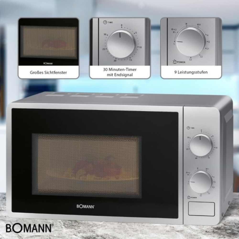 Мікрохвильова піч Bomann MWG 6015 CB silver (MWG6015CB silver) - це ваш надійний помічник у сучасній кухні, що поєднує стильний дизайн та високоякісну функціональність. Її елегантний сріблястий корпус буде гармонійно вписуватись у будь-який інтер'єр, надаючи особливого шарму вашій кухні. Вона створена для того, щоб полегшити ваші кулінарні процеси та зробити їх більш ефективними.