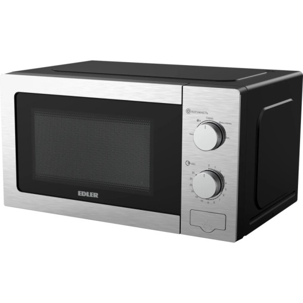 Особливим плюсом цієї моделі є підсвічування камери, яке надає можливість контролювати процес приготування їжі без необхідності відкривати дверцята. Це не тільки зручно, але й допомагає зберегти енергію під час використання приладу. Всі ці властивості роблять Edler EDMS-207SSMB не лише високоефективним, але й надійним помічником на вашій кухні.