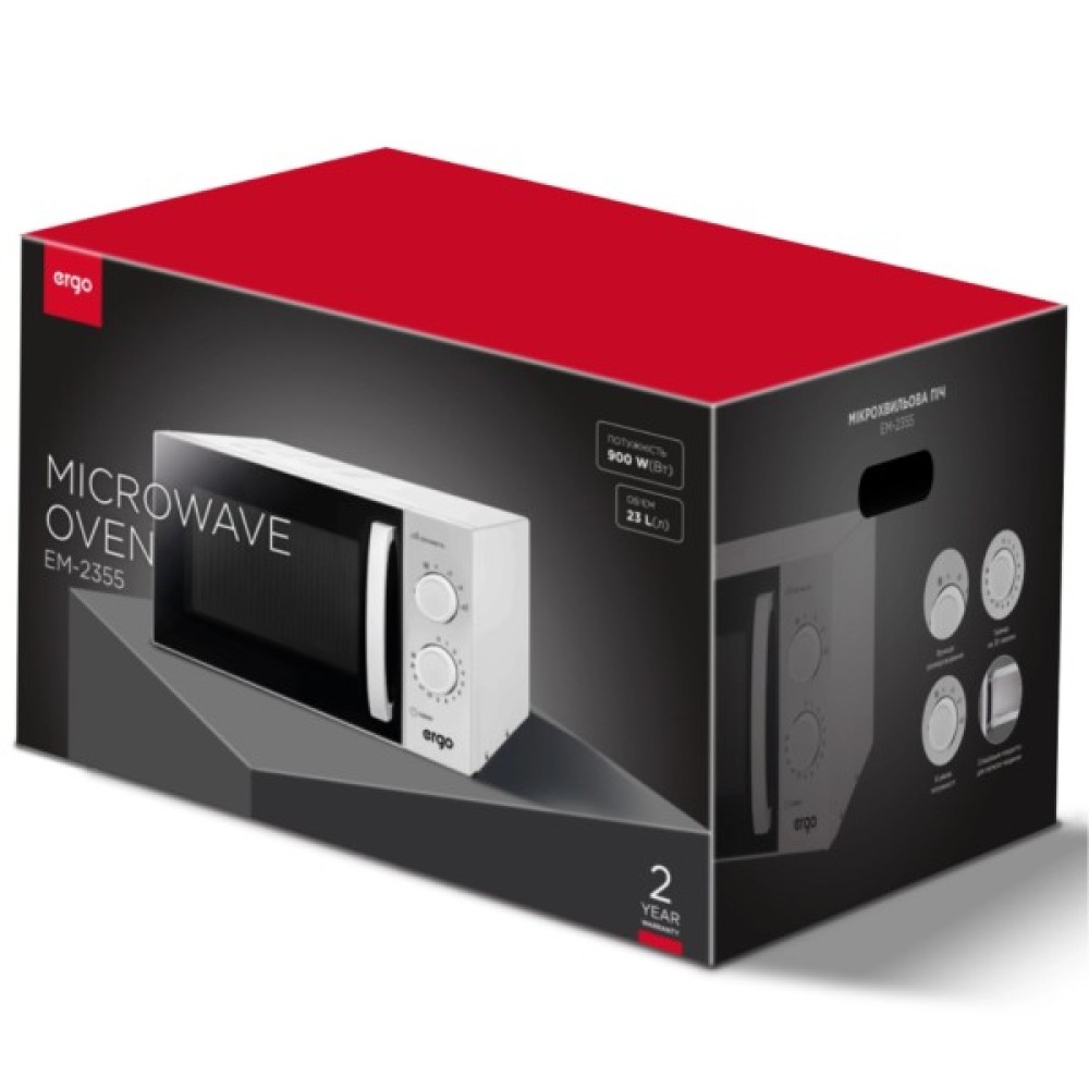 Враховуючи всі ці якості, модель Ergo EM-2355 стане відмінним вибором для тих, хто цінує функціональність, якість та безпеку в одному пристрої. Незалежно від того, потребуєте ви швидко розігріти сніданок або приготувати вечерю, ця мікрохвильова піч завжди буде на висоті, задовольняючи найвибагливіші бажання своїх користувачів.