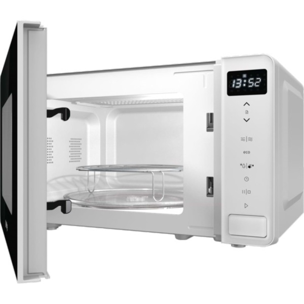 Завдяки EcoMode, можна знижувати енергоспоживання, що робить цю мікрохвильову піч не тільки ефективною, але й екологічною. Надайте вашій кухні інноваційний акцент з мікрохвильовою піччю Gorenje MO20S4W — надійним вибором для сучасного побуту.