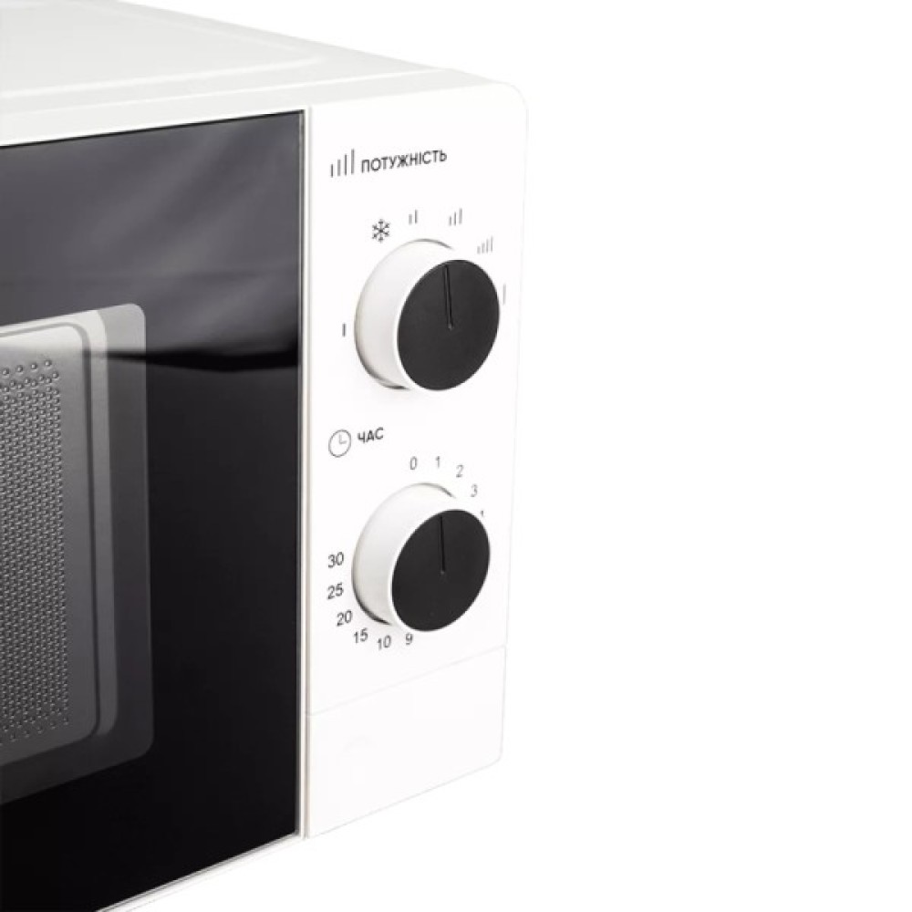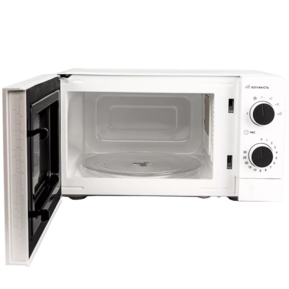 Управління мікрохвильовкою здійснюється за допомогою надійної механічної системи. Це не тільки забезпечує простоту в експлуатації, але й довговічність, оскільки механічні компоненти рідше виходять з ладу порівняно з електронними. Дверцята відкриваються легким натисканням кнопки, що робить використання зручним навіть при зайнятих руках.