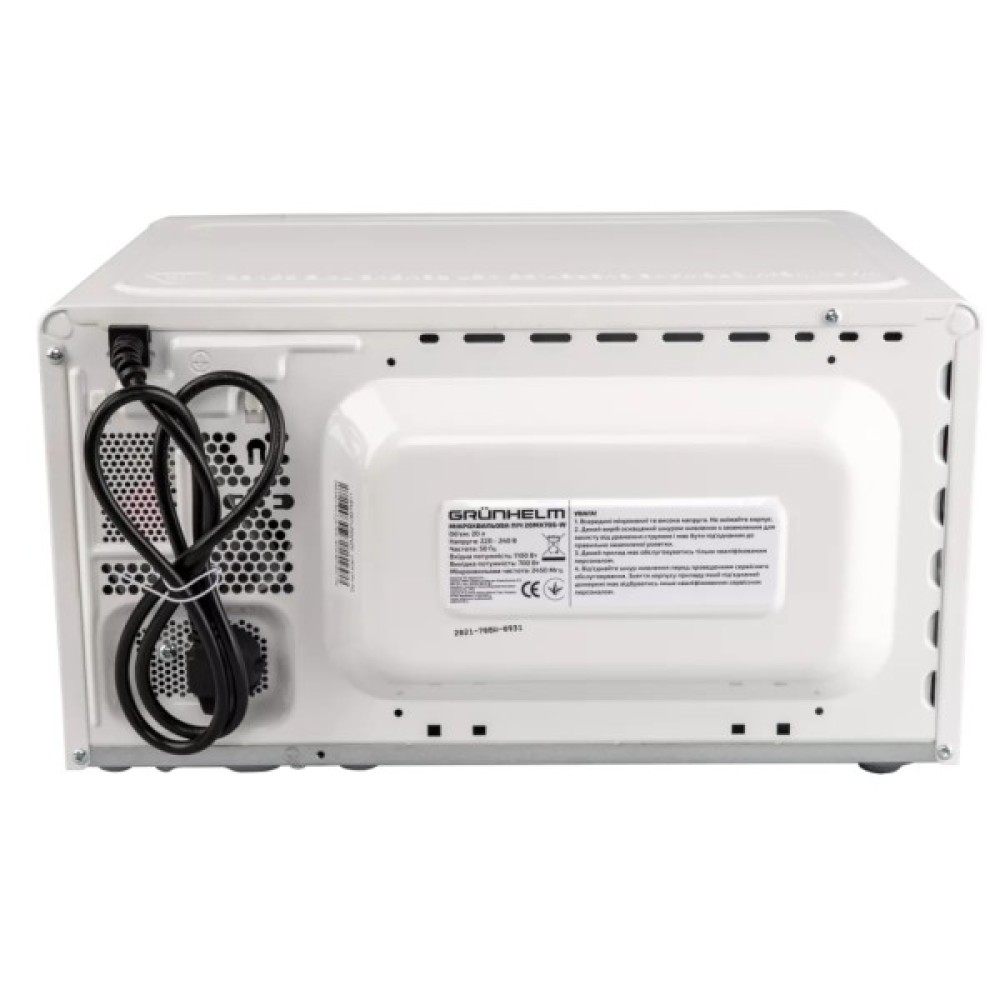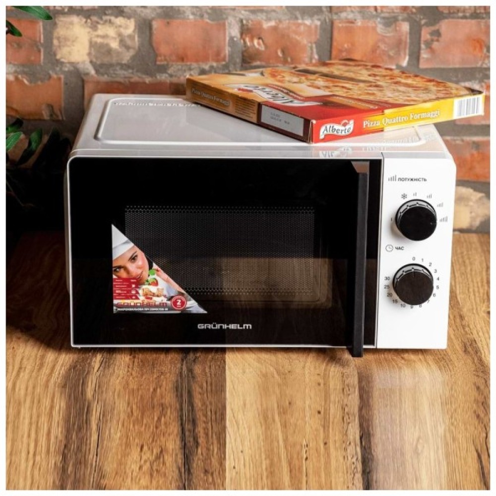 Мікрохвильова піч Grunhelm 20MX708-W — це надійний помічник на вашій кухні, який робить процес приготування їжі легким, швидким та ефективним завдяки своїм функціональним можливостям. Ця модель відзначається простотою в експлуатації та елегантним дизайном, який вдало вписується у будь-який інтер'єр завдяки своєму класичному білому кольору.