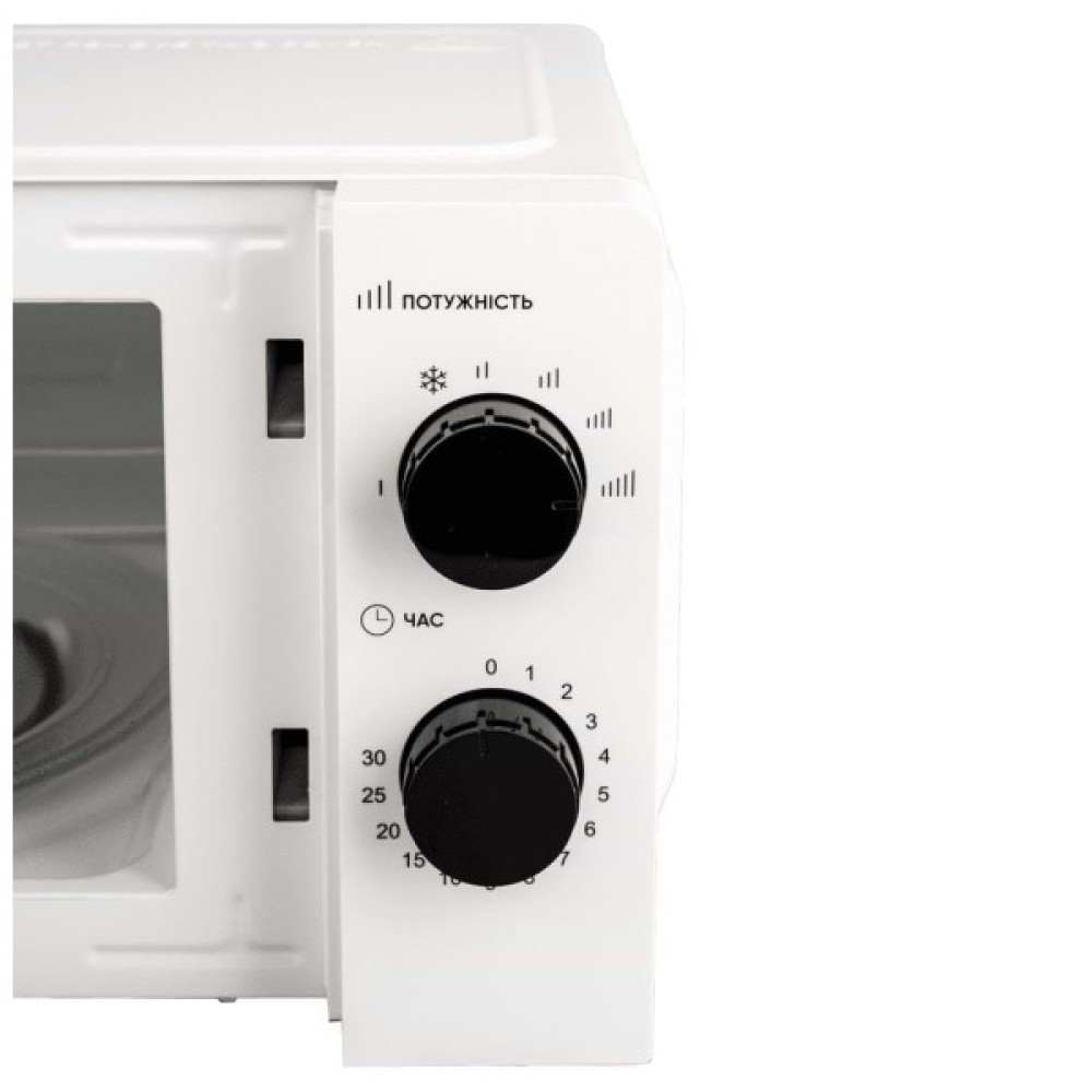 Мікрохвильова піч має потужність НВЧ у 700 Вт, що забезпечує швидке та рівномірне розігрівання їжі. Завдяки механічному управлінню, пристрій простий у використанні та інтуїтивно зрозумілий для користувачів різного рівня досвіду. Додатковою функцією є розморожування, що дозволяє з легкістю підготувати продукти до подальшого приготування.