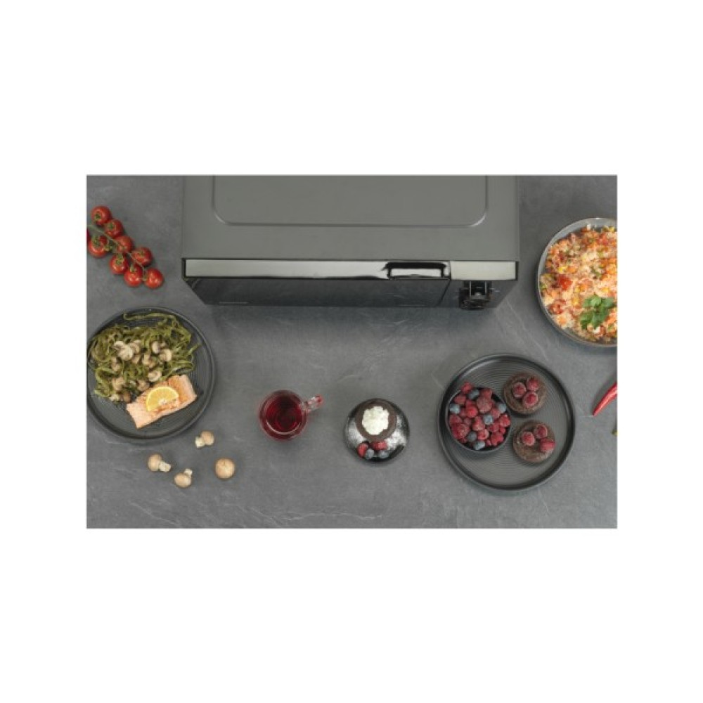 Обертання на 360° для рівномірного приготування їжіЇжа готується, розігрівається або підсмажується на грилі до ідеального стану, оскільки тепло сягає кожної часточки. Завдяки постійному обертанню тарілки хвилі проникають у страву з усіх боків, що забезпечує ефективність і рівномірність приготування їжі. Обертання також сприяє оптимальному розморожуванню. Тарілка легко знімається для зручності чищення та підходить для миття в посудомийній машині.