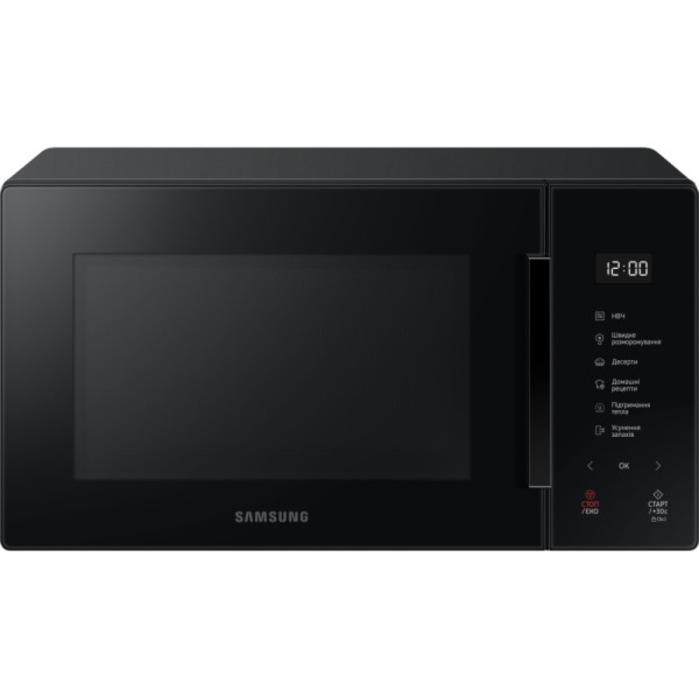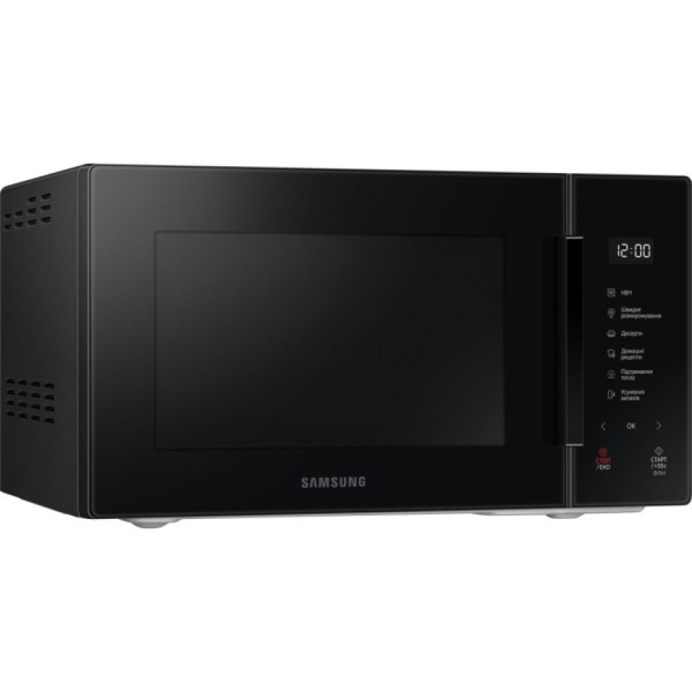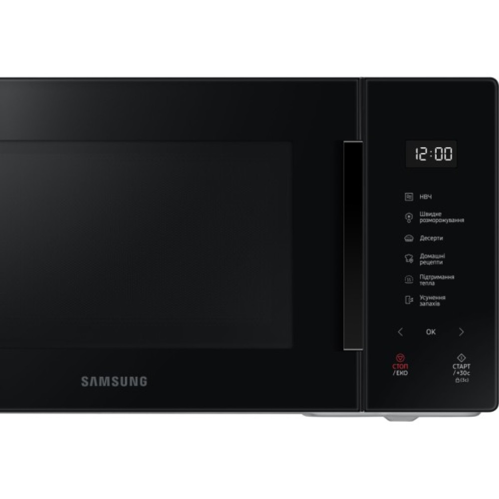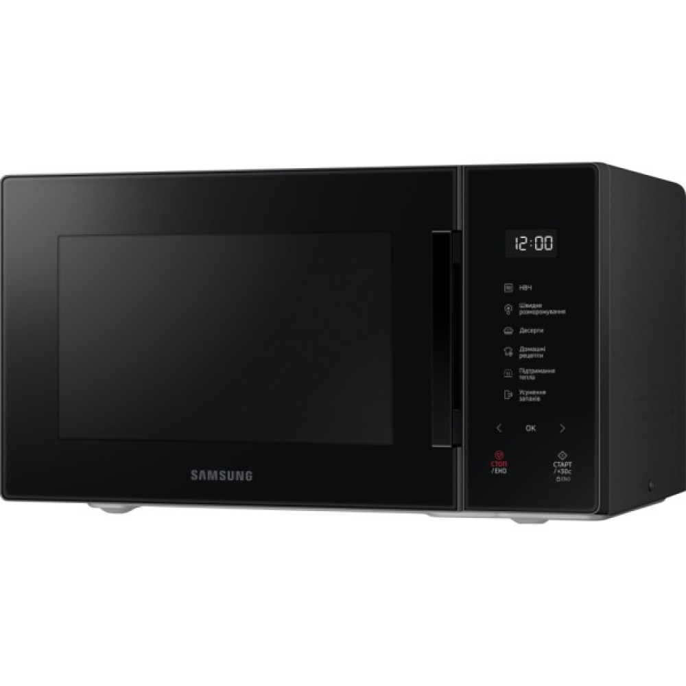 Мікрохвильова піч Samsung MS23T5018AK/UA демонструє вишукану простоту у поєднанні з функціональністю. Її лаконічний дизайн привертає увагу елегантними лініями та витонченою формою, добре вписуючися у будь-який сучасний інтер'єр. Дверцята з великим оглядовим вікном відкриваються за допомогою стильного горизонтального хвата, тоді як сенсорна панель Glass Touch з великим цифровим дисплеєм дарує можливість легкого і зрозумілого керування.