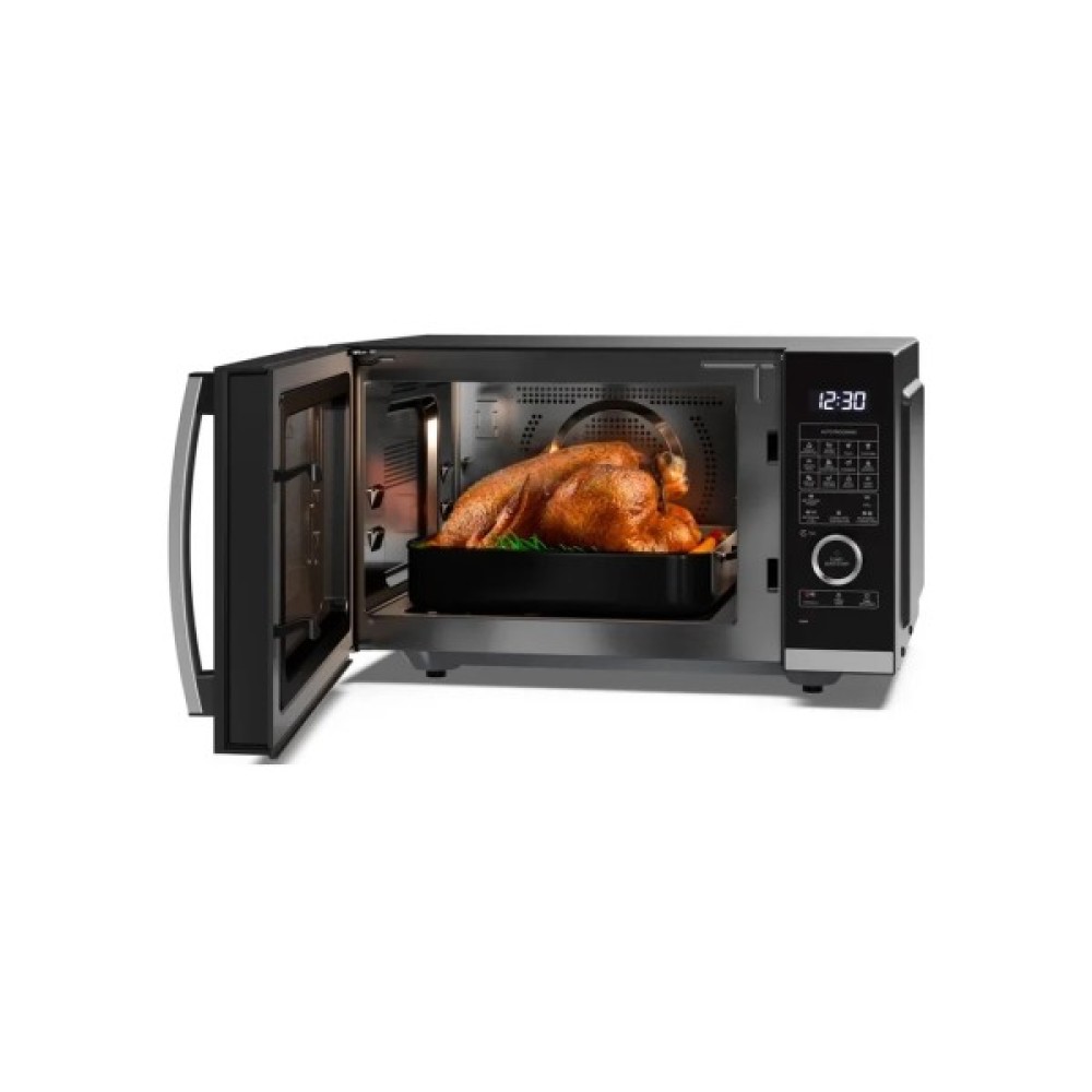 Ця мікрохвильова піч не просто зручно розміщується на будь-якій кухні завдяки своїм компактним габаритам (ширина 50.9 см, глибина 49 см, висота 28.8 см), але й пропонує неймовірний об'єм – 25 літрів, що робить її ідеальним вибором для різноманітних кулінарних завдань. Вона оснащена потужним грилем потужністю 1200 Вт та НВЧ-потужністю 900 Вт, що дозволяє швидко та ефективно готувати смачні страви з апетитною хрусткою скоринкою.