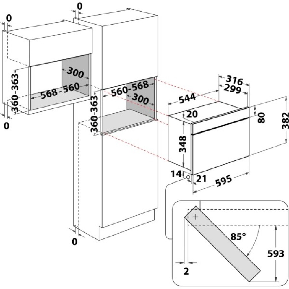Розміри ніші для вбудовування (ВxШxГ) 36-36.3 х 56-56.8 х 30 см