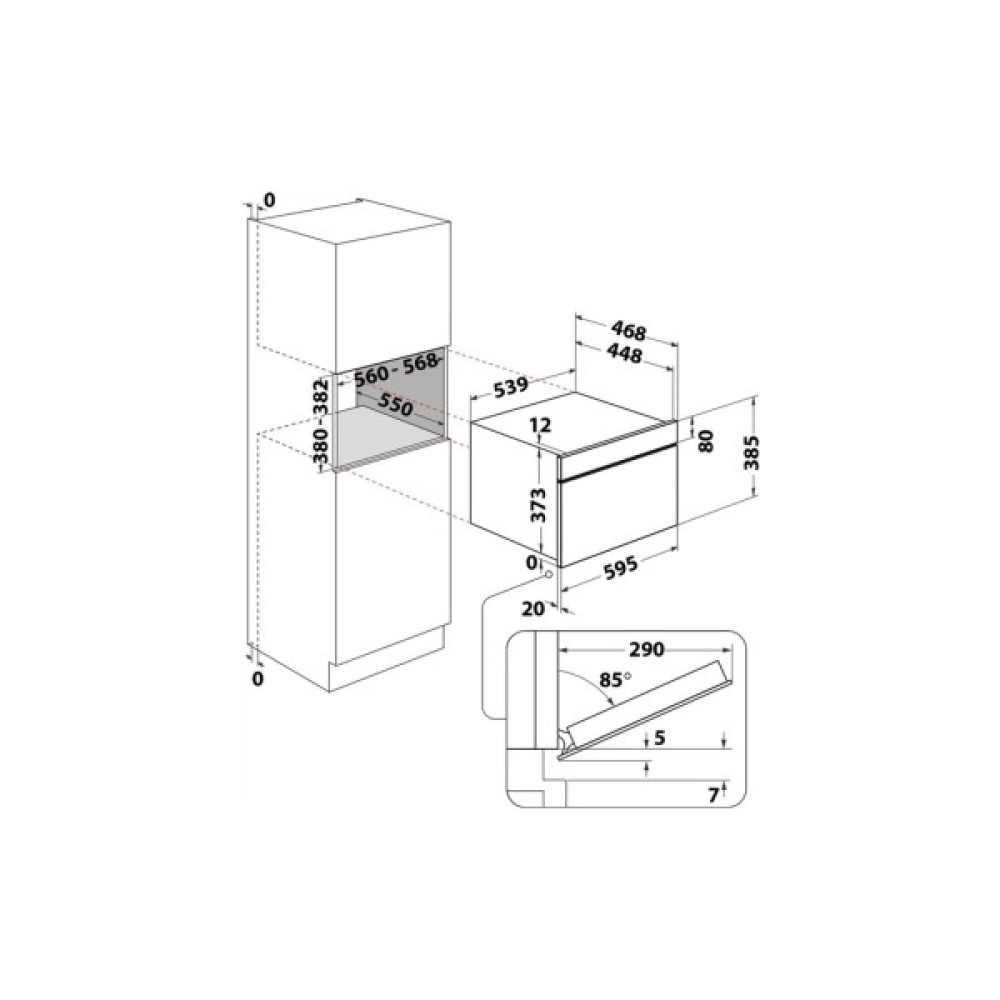Розміри ніші для вбудовування (ВxШxГ) 38-38.2 x 55.6-56.8 x 55 см