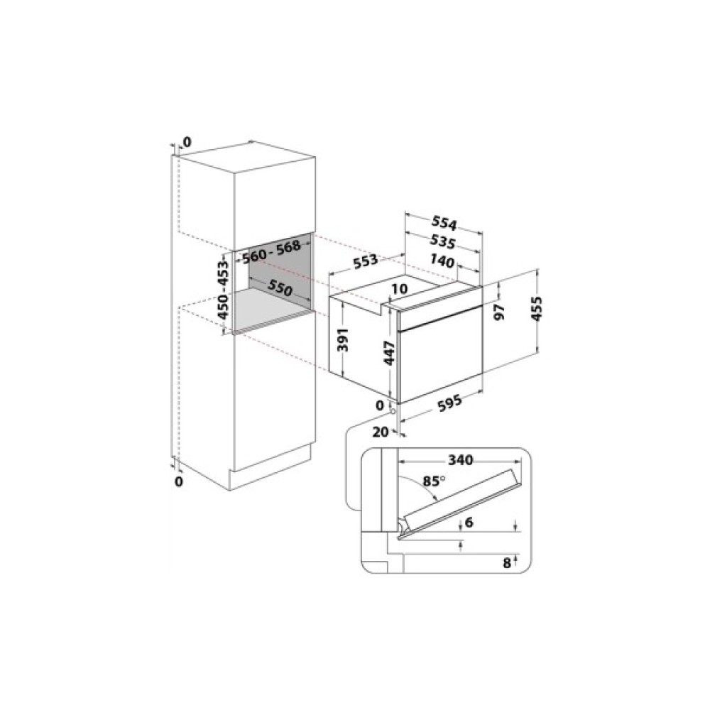 Розміри ніші для вбудовування (ВxШxГ) 45-45.5 x 55.6-56.8 x 55 см