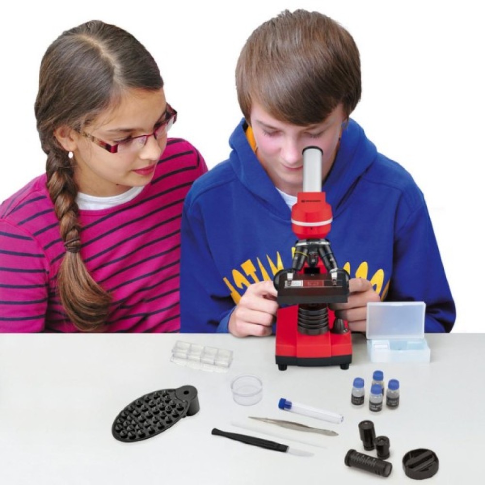 Перелік аксесуарів включає готові слайди, до огляду яких можна приступити негайно. Також в наборі є аксесуари для препарування зразків, мікротом для самостійного приготування зразків, інкубаторій і препарати для самостійного приготування. Не дивлячись на те, що даний прилад швидше буде цікавий для дітей і підлітків, всі оптичні елементи виконані зі скла, серйозне збільшення дозволить розглянути більшість з того, що доступно "дорослому" біологічному мікроскопу.