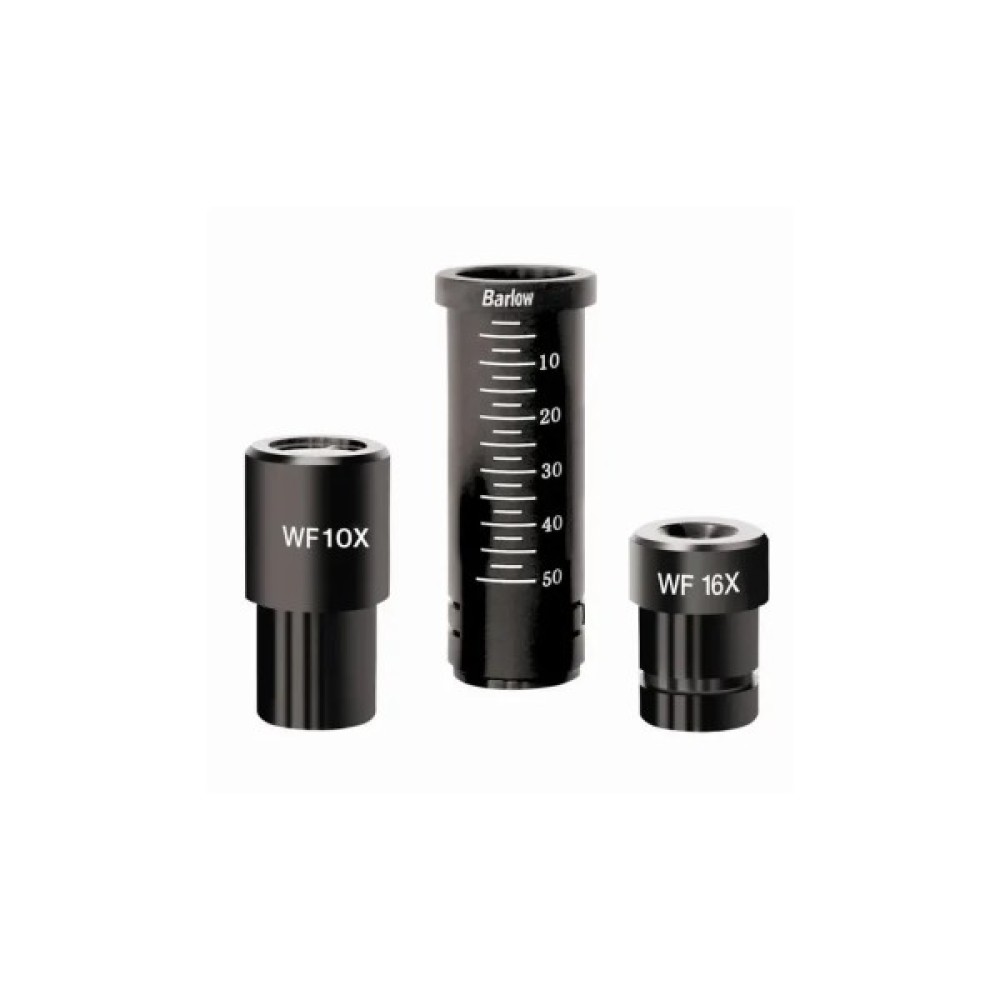Комбінація двох ширококутних окулярів та трьох об'єктивів дає можливість отримати збільшення 640х. Вдалим рішенням є використання в мікроскопі лінзи Барлоу для отримання безступінчастого (плавного) масштабування зображення, завдяки чому досягається максимальне збільшення 1024х. Монокулярна насадка, нахилена під кутом 45°, повертається на 360°, дозволяючи спостерігати у будь-якому зручному положенні, і навіть працювати з мікроскопом групі дітей чи дорослих без переміщення мікроскопа у просторі.