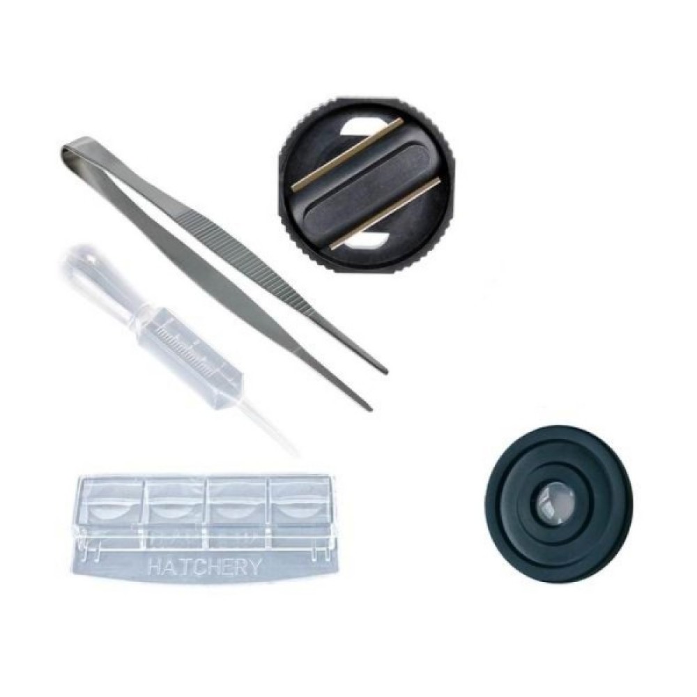Перелік аксесуарів включає готові слайди, до огляду яких можна приступити негайно. Також в наборі є аксесуари для препарування зразків, інкубаторій і все необхідне для вирощування зоопланктону в домашніх умовах. Не дивлячись на те, що даний прилад швидше буде цікавий для дітей і підлітків, всі оптичні елементи виконані зі скла, серйозне збільшення дозволить розглянути практично все, що доступно дорослому біологічному мікроскопу.