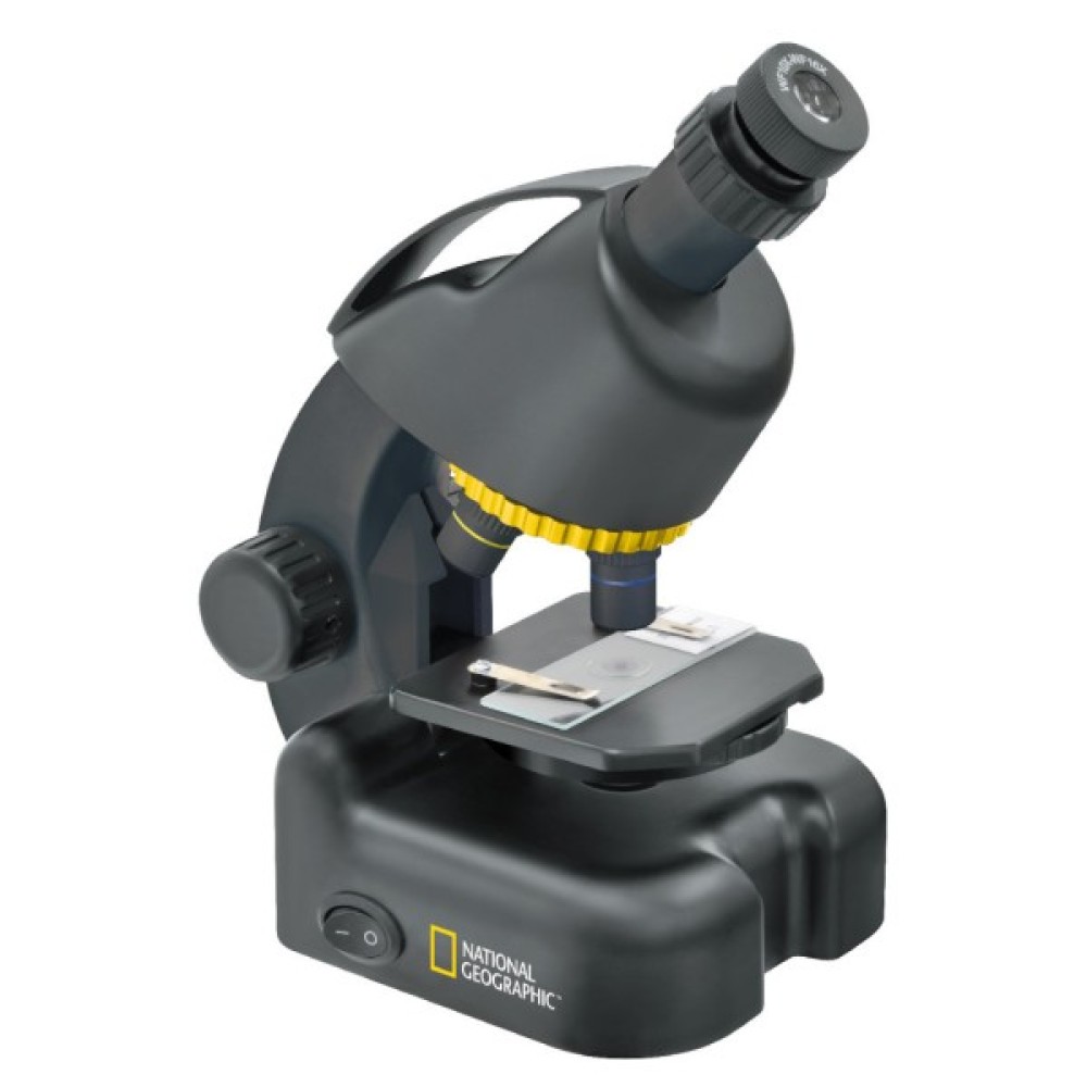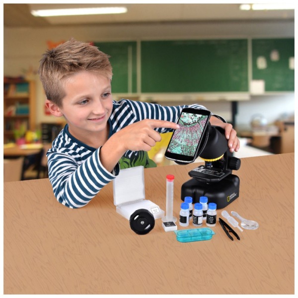 National Geographic 40x-640x (з адаптером для смартфона) являє собою сучасний мікроскоп для навчання. Мікроскоп укомплектований великою кількістю різних аксесуарів, готових слайдів для перегляду, оснащений револьверною головкою з трьома об'єктивами, що дають в комплексі з зум-окуляром збільшення до 640х. Відмінною особливістю даного мікроскопа є наявність адаптера для камери смартфона. За допомогою адаптера для смартфона, що йде в комплекті з мікроскопом, легко фотографувати об'єкти спостережень на камеру вашого смартфона.