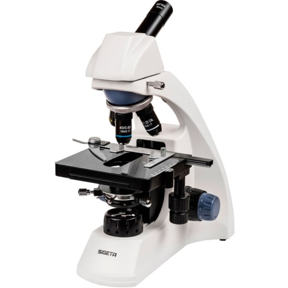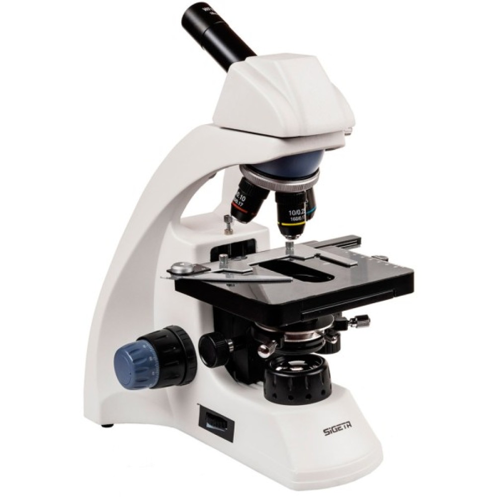 Sigeta MB-104 40x - 1600x LED Mono — біологічний монокулярний мікроскоп з ахроматичною оптикою для проведення лабораторних досліджень у світлі. Мікроскоп підійде як для навчання, так і для практичного застосування: дослідження біологічних рідин, зразків рослинних та тваринних тканин, вивчення гістологічних препаратів та цитологічних проб, проведення основних бактеріологічних та мікрологічних досліджень.